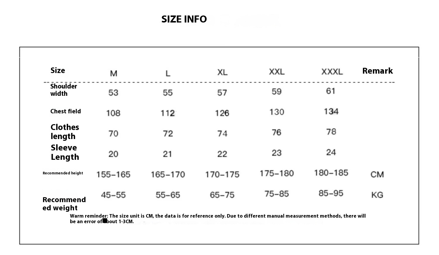 1. Asian sizes are 1 to 2 sizes smaller than European and American people. Choose the larger size if your size between two sizes. Please allow 2-3cm differences due to manual measurement.