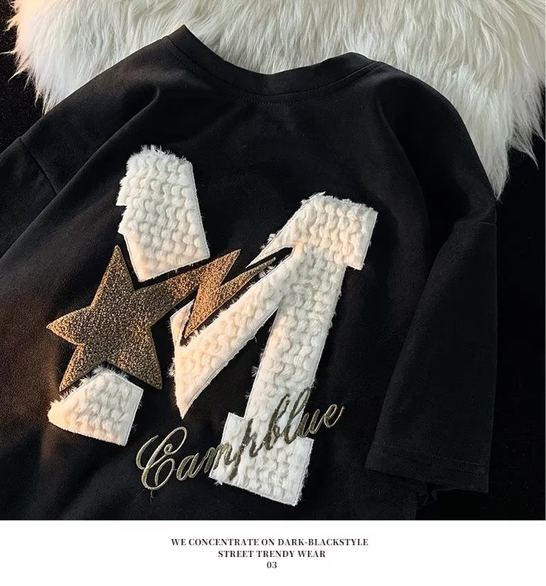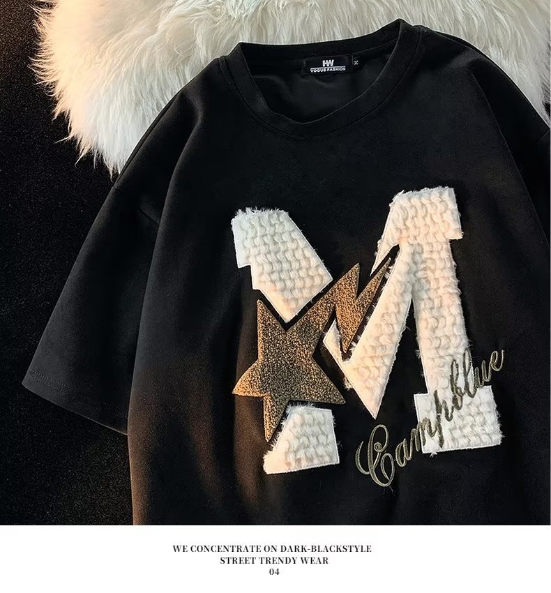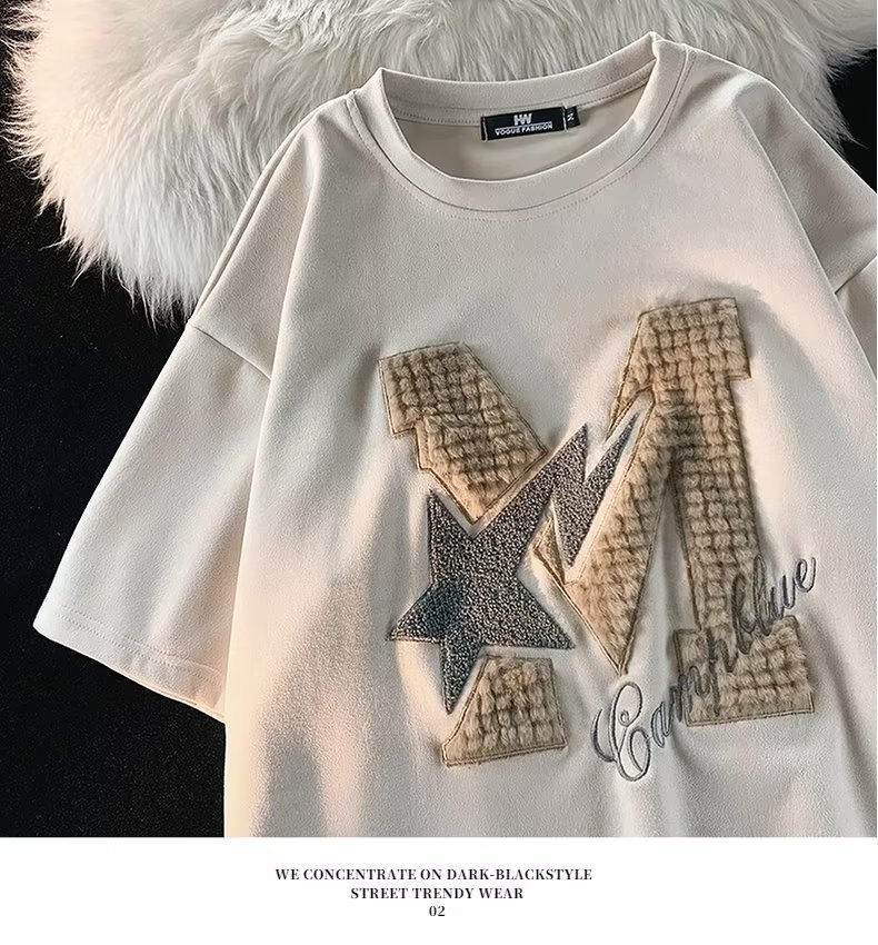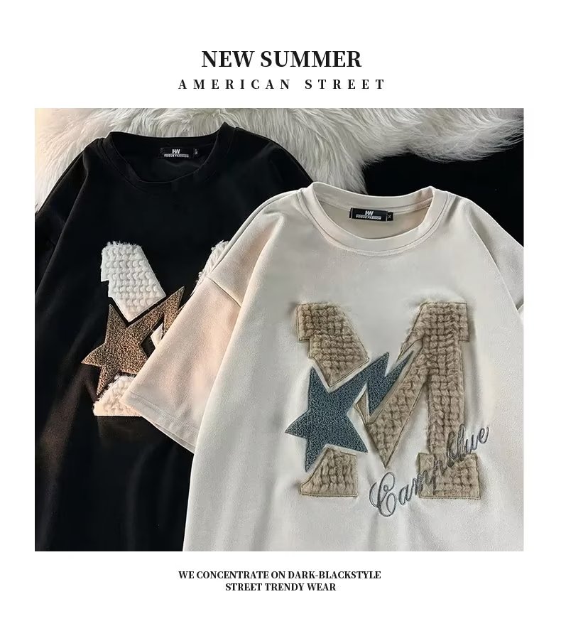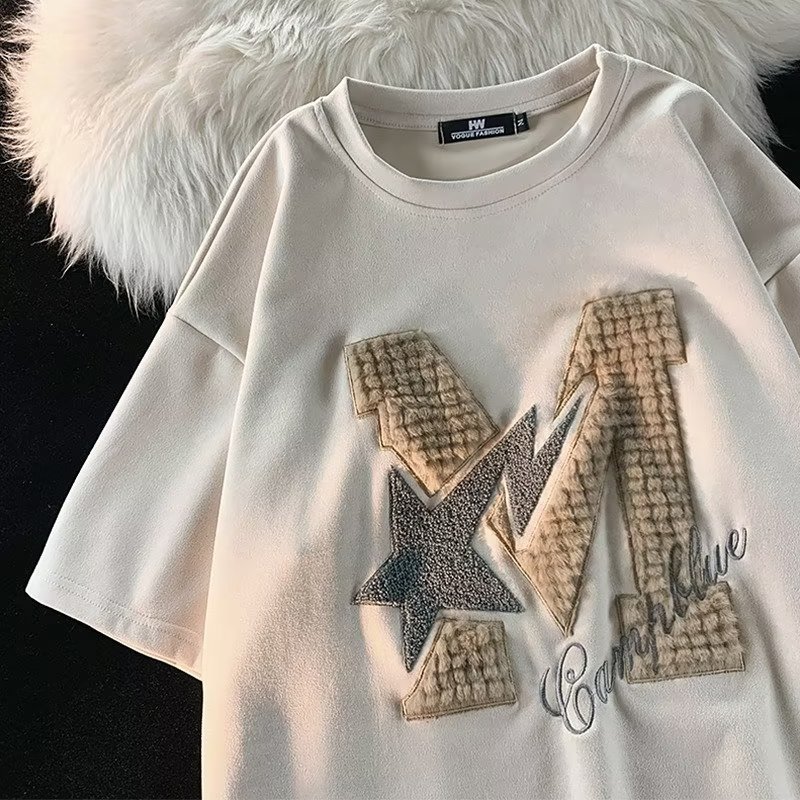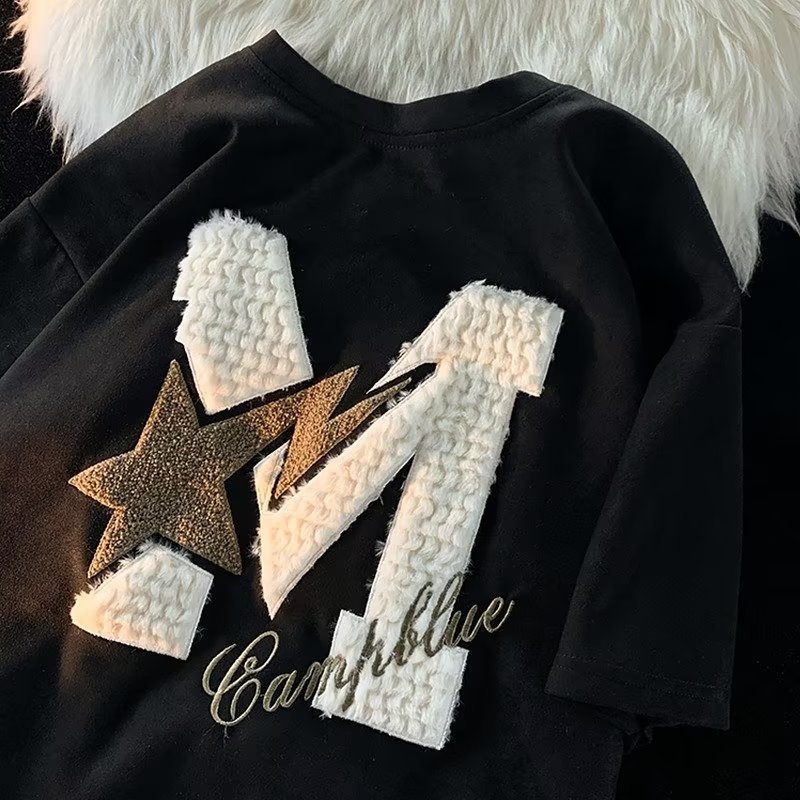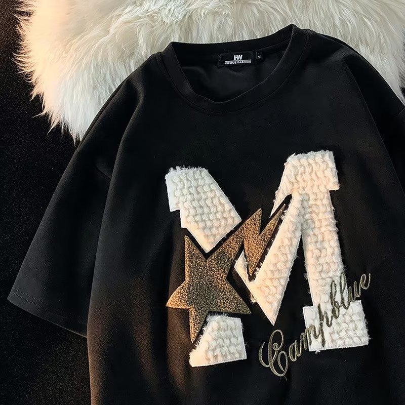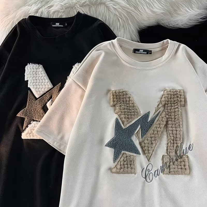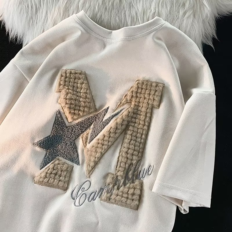 Letter Flocking Short-sleeved T-shirt Couple's Tops