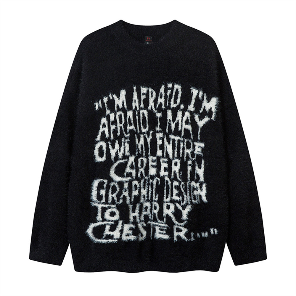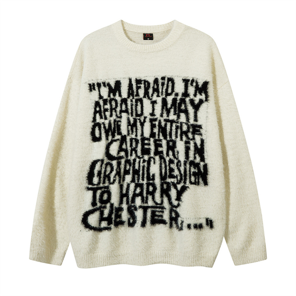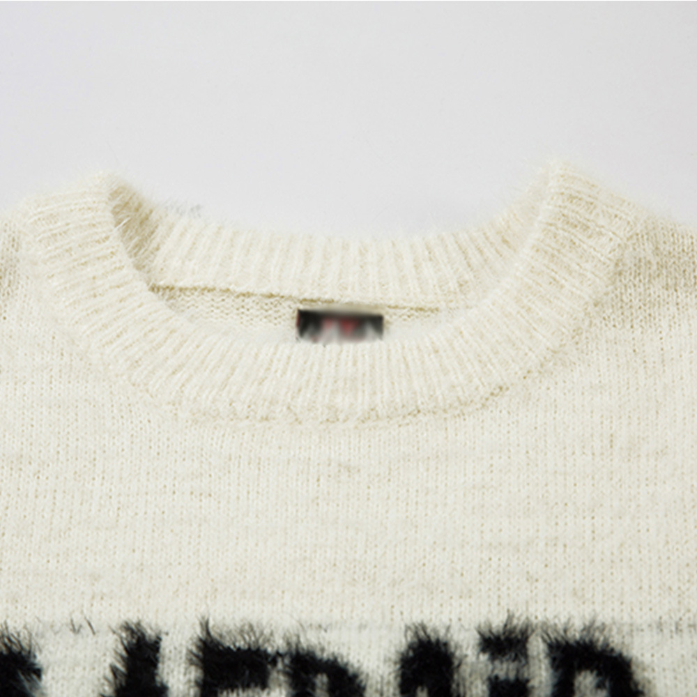 Letter Jacquard Loose Round Neck Sweater