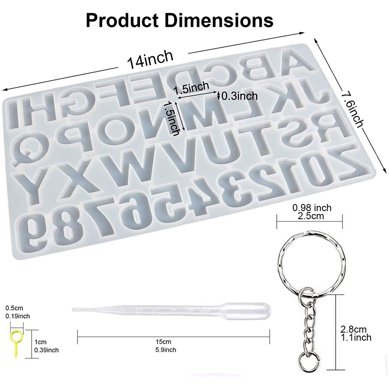 [Easy to use]: Our alphabet silicone mold products are specially designed for resin novices who match 10PCS plastic dropper, 10PCS key ring, 100PCS screw eyelet needle. You can use these accessories to make complete crafts.