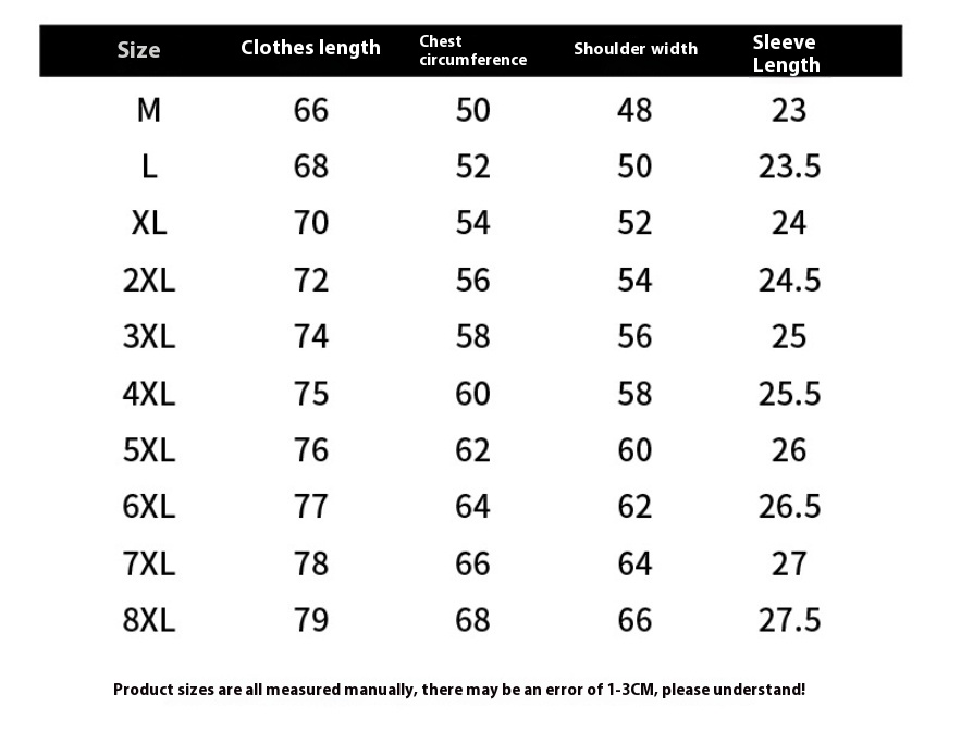 Size: M,L,XL,2XL,3XL,4XL,5XL,6XL,7XL,8XL