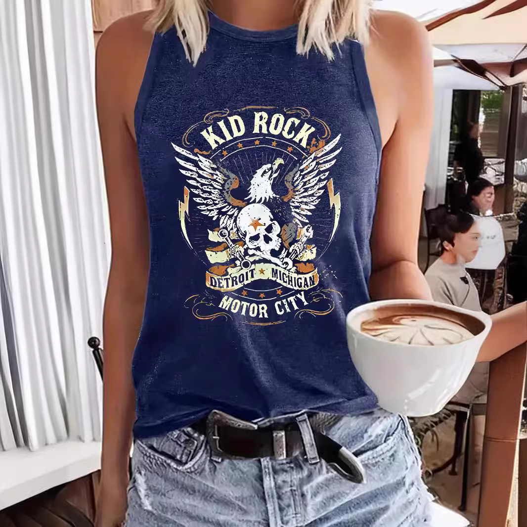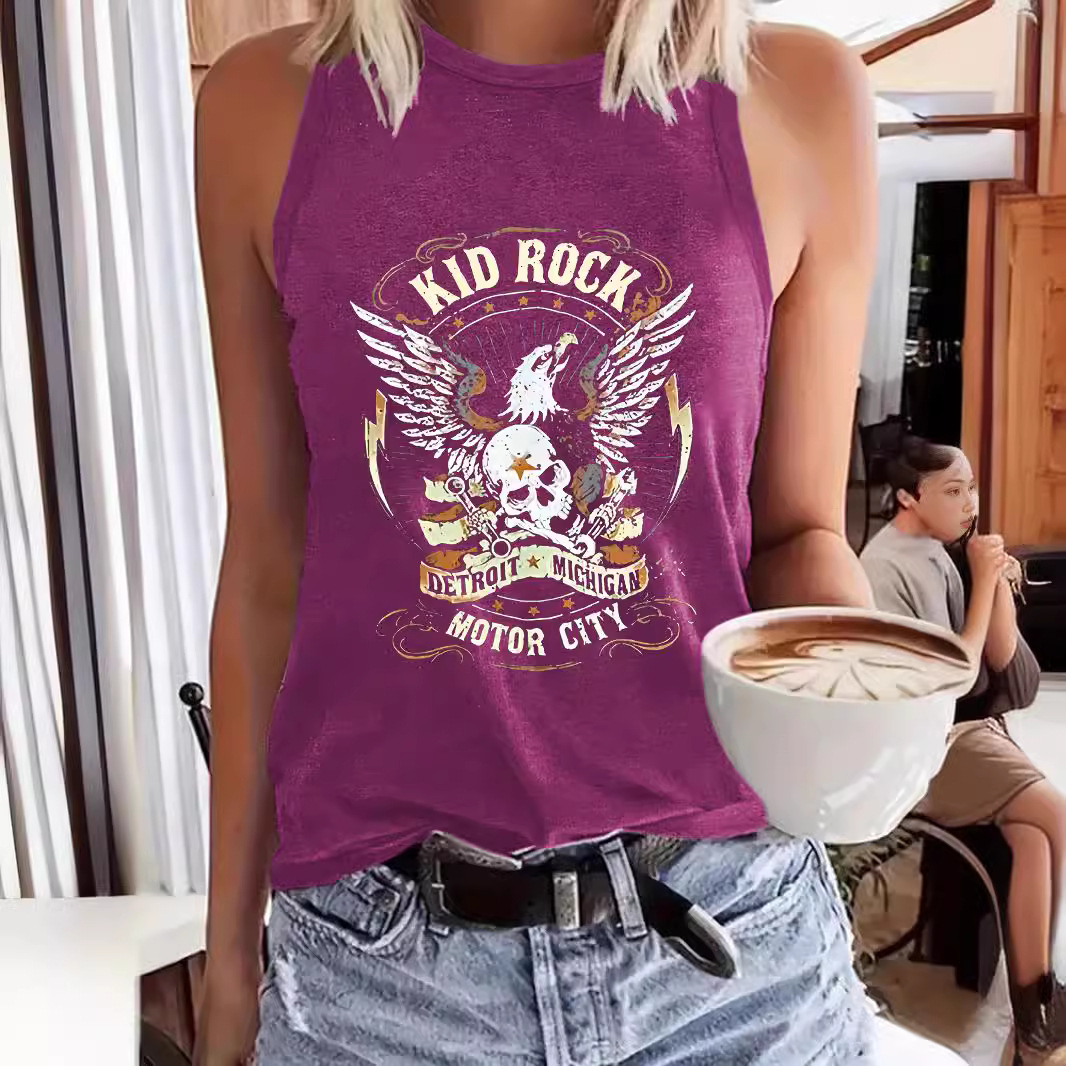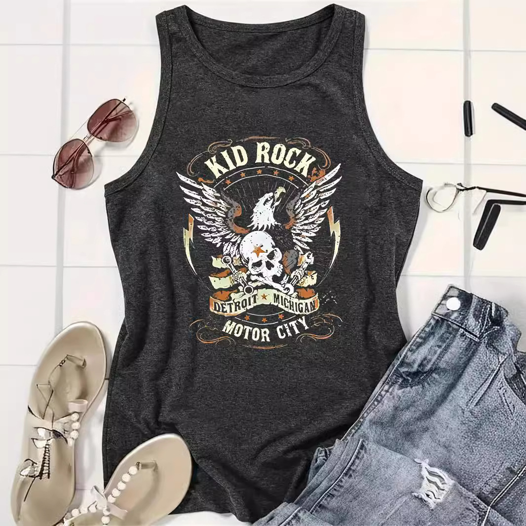 Letter-print Crew-neck Tank Top Springsummer Casual Sleeveless Top For Women