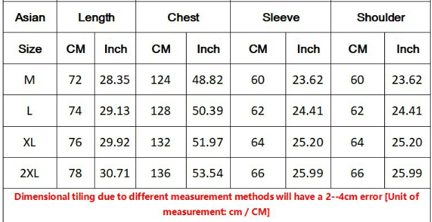 1. Asian sizes are 1 to 2 sizes smaller than European and American people. Choose the larger size if your size between two sizes. Please allow 2-3cm differences due to manual measurement. 2. Please check the size chart carefully before you buy the item, if you don't know how to choose size, please contact our customer service. 3.As you know, the different computers display colors differently, the color of the actual item may vary slightly from the following images.