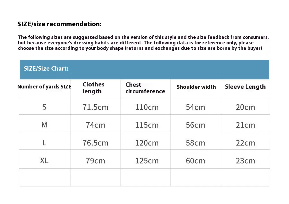 Note: 1. Asian sizes are 1 to 2 sizes smaller than European and American people. Choose the larger size if your size between two sizes. Please allow 2-3cm differences due to manual measurement. 2. Please check the size chart carefully before you buy the item, if you don't know how to choose size, please contact our customer service. 3.As you know, the different computers display colors differently, the color of the actual item may vary slightly from the following images.