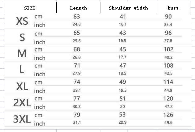 Size: XS,S,M,L,XL,2XL,3XL