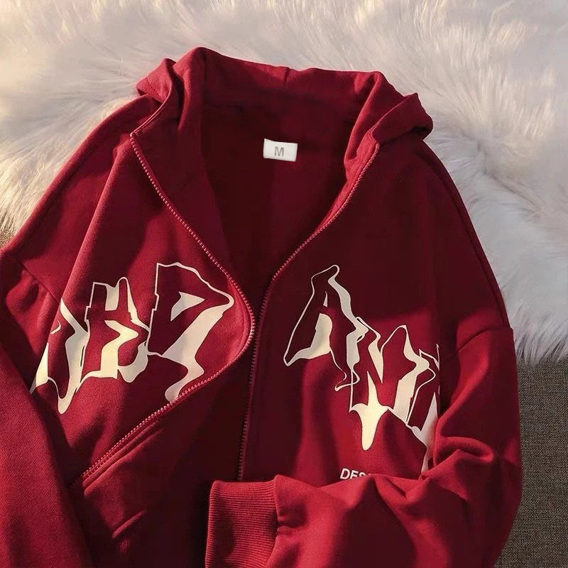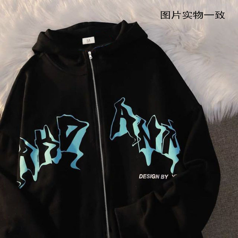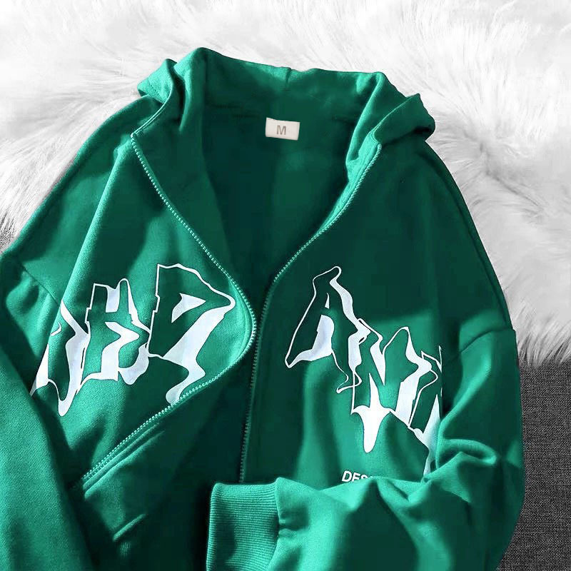 Letter Printed Hoodie Zipper Sweater
