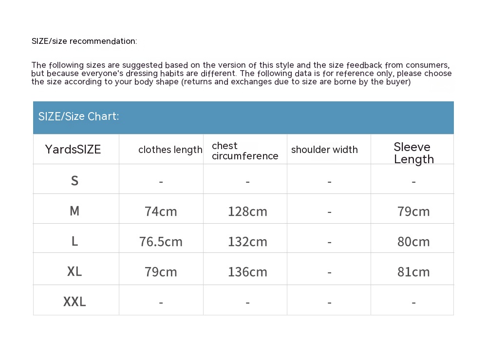 1. Asian sizes are 1 to 2 sizes smaller than European and American people. Choose the larger size if your size between two sizes. Please allow 2-3cm differences due to manual measurement. 2. Please check the size chart carefully before you buy the item, if you don't know how to choose size, please contact our customer service. 3.As you know, the different computers display colors differently, the color of the actual item may vary slightly from the following images.