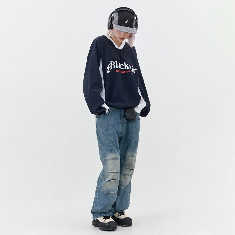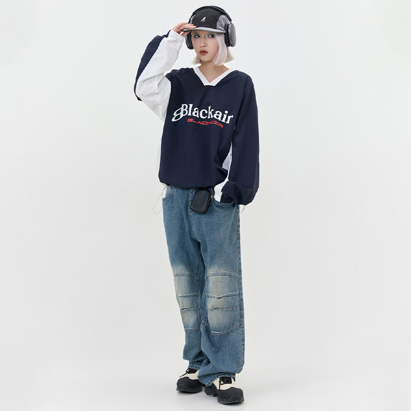 Letter V-collar Contrast Color Couple Long Sleeve Pullover Hoodie