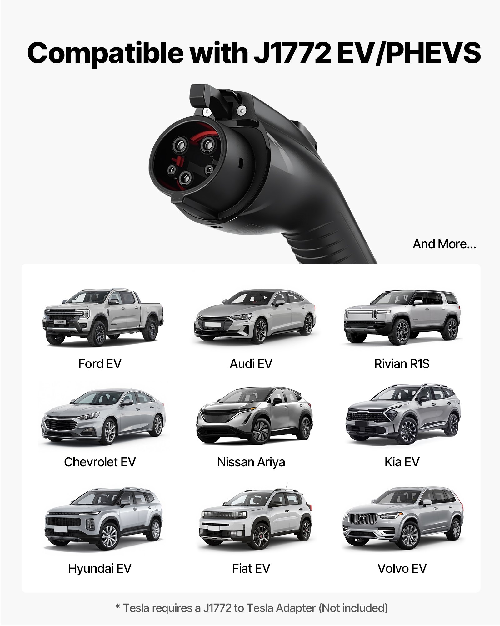 Universal J1772 Compatibility: Compatible with multiple electric and plug-in hybrid vehicles. This level 1/2 EV charger features a 25 ft cable, easily reaching across driveways or garages. Ideal for home with multiple EVs or shared charging stations