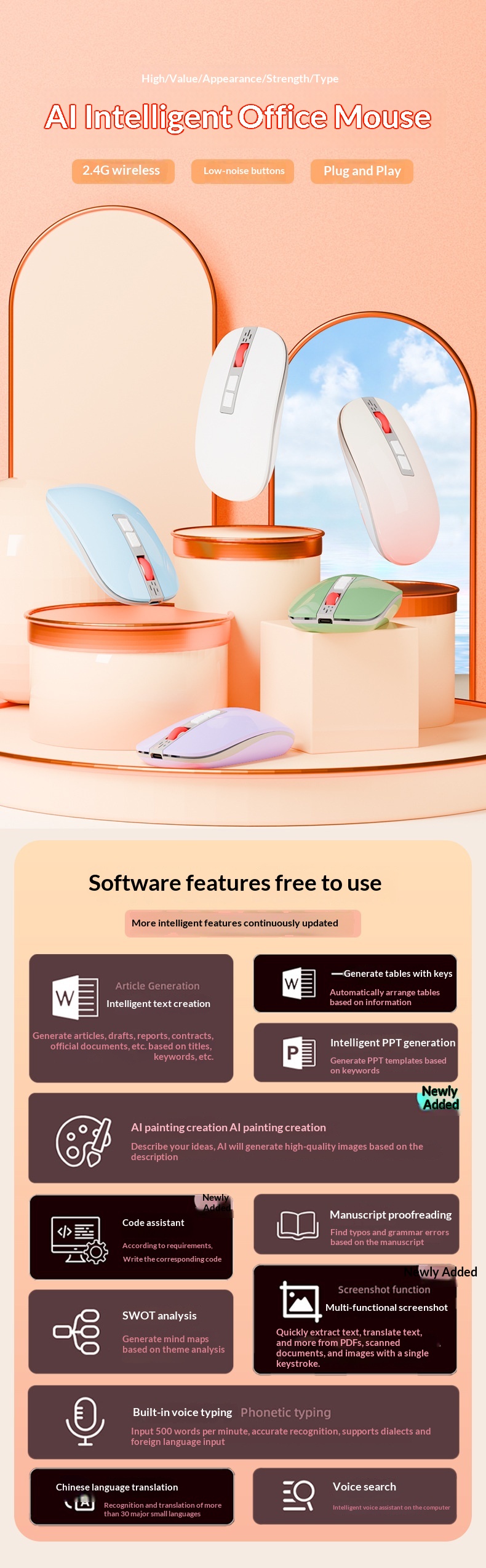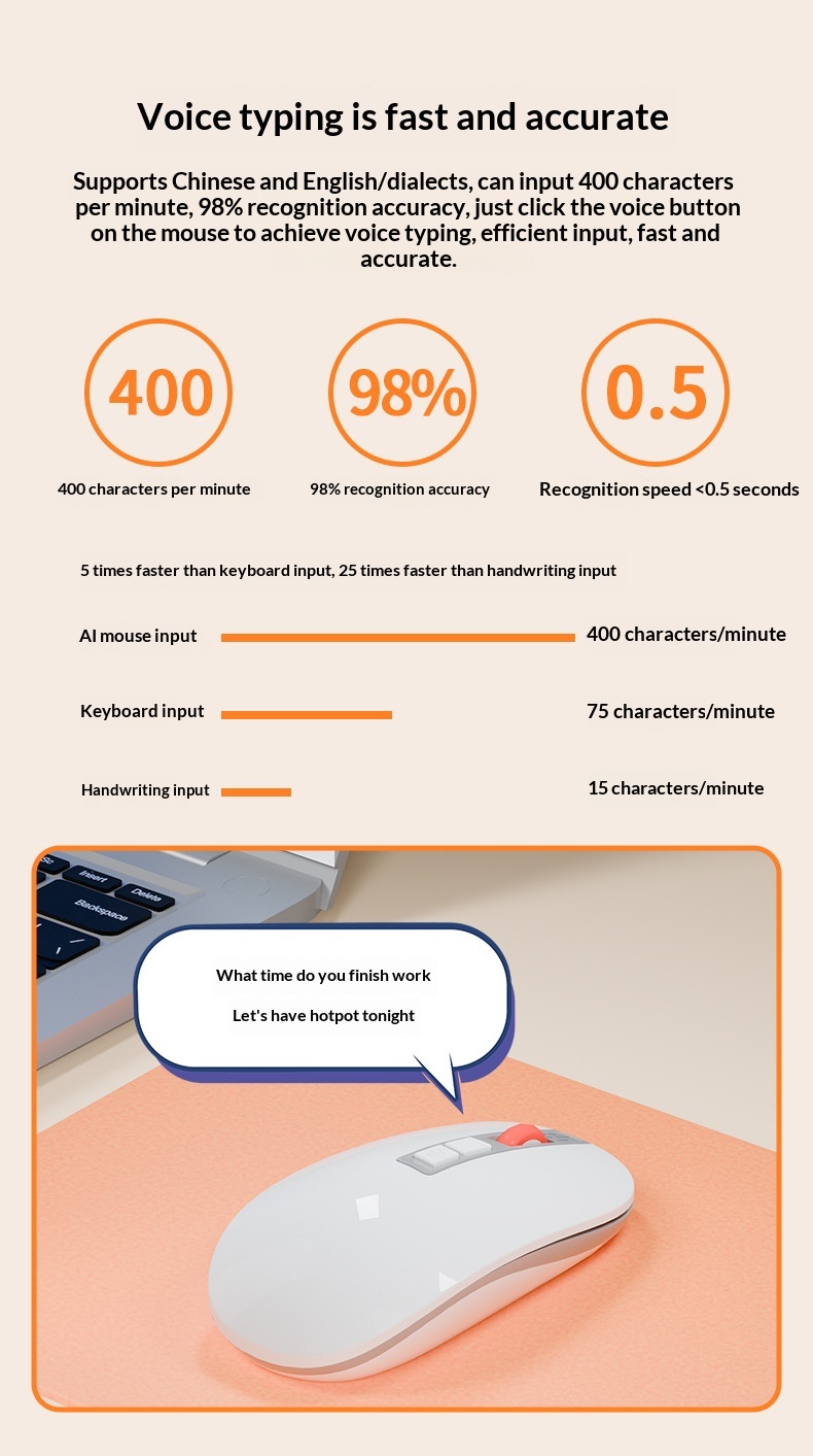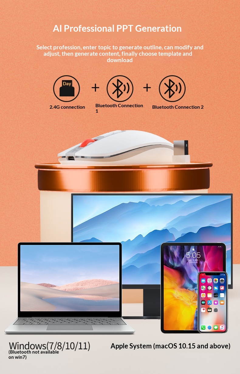 Specification: LF-05 White Wireless Bluetooth Tri-Mode AI Smart Voice Mouse