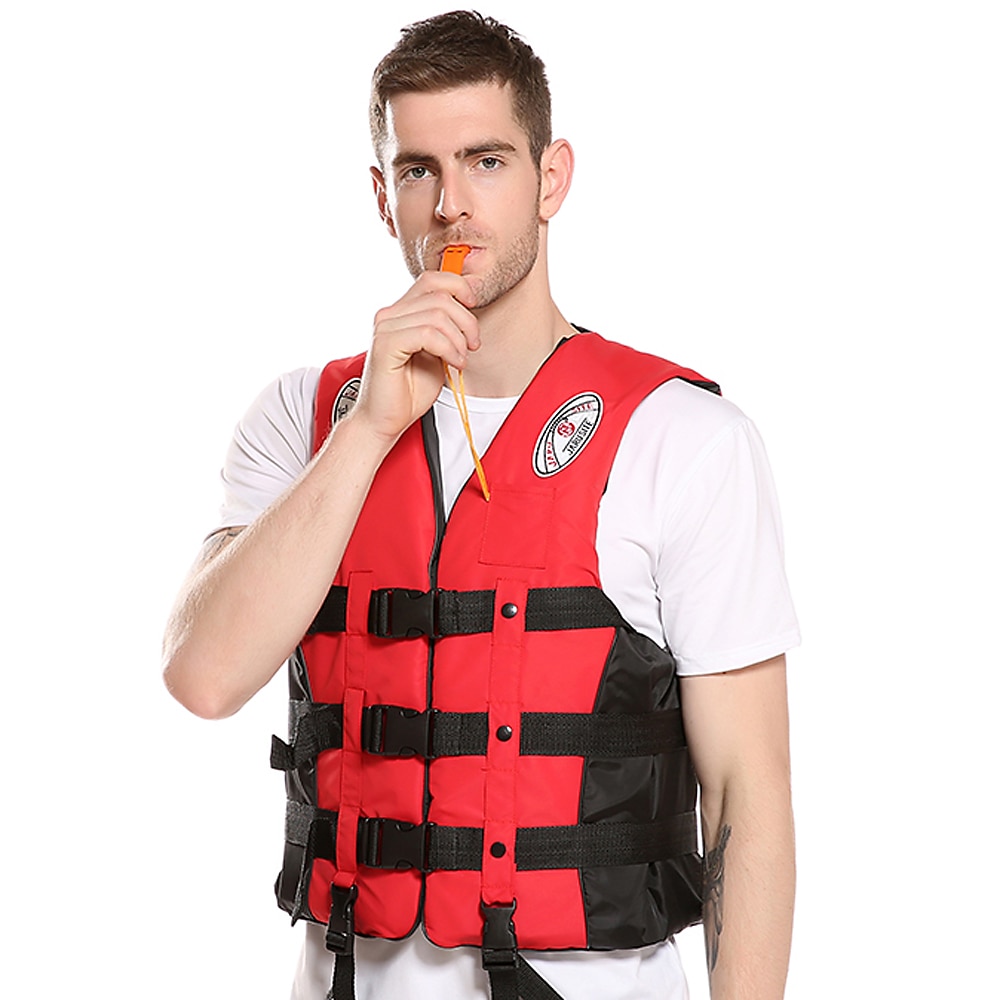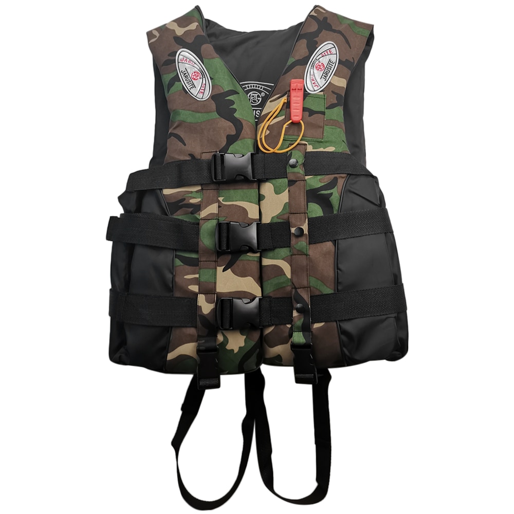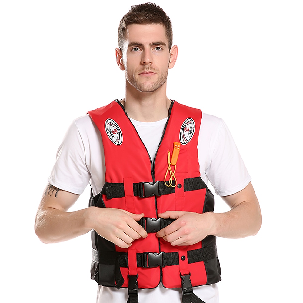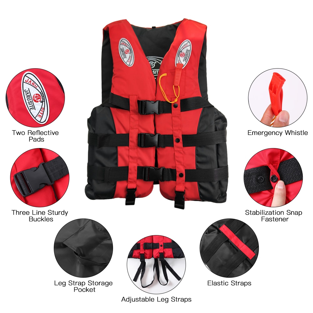 Three line buckles and adjustable leg straps to connect life jacket with you tightly.