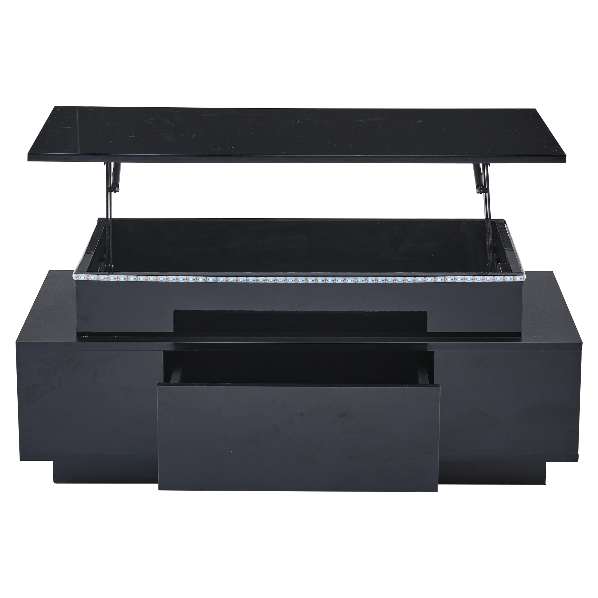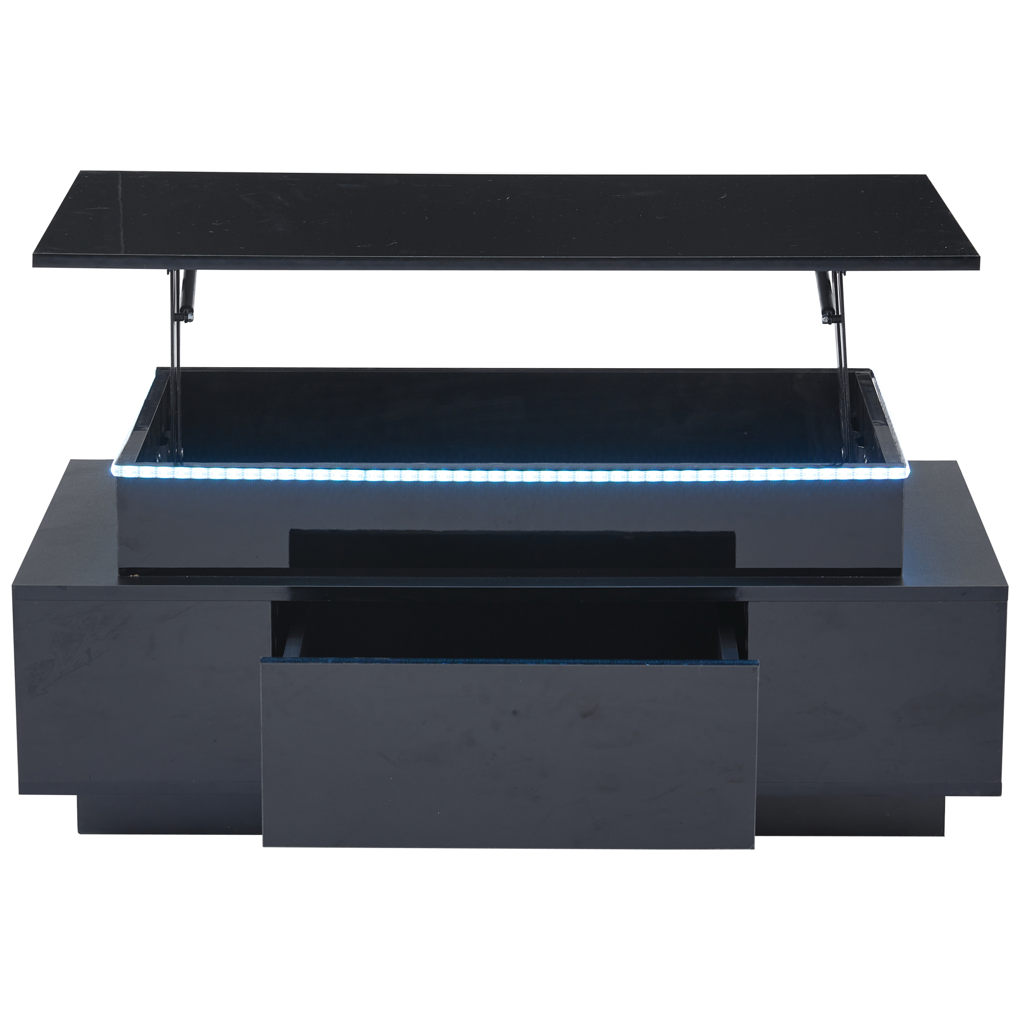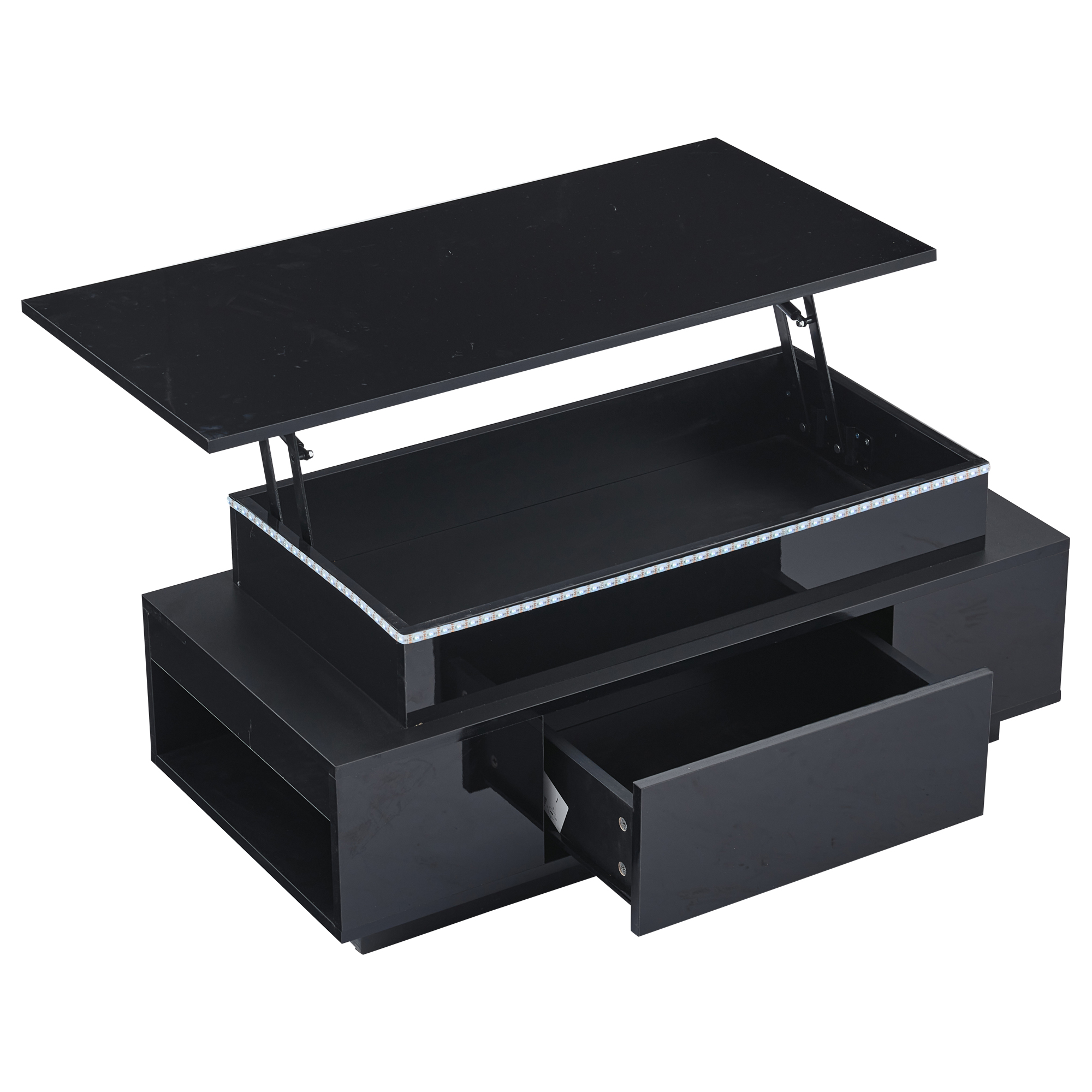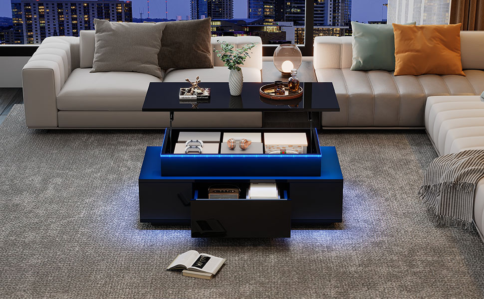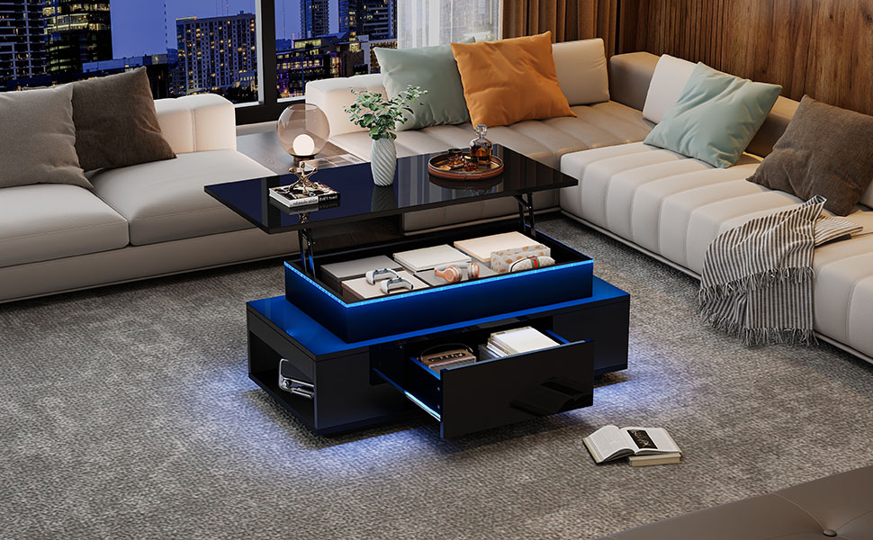 Product Name:Lift-Top Coffee Table, Highgloss Centre Table with 1 drawers & LED lights, Hidden storage space, Lifting Sofa Side Table, Space-saving End Table,Tea Table,for livingroom, office, 96*45*40m, black