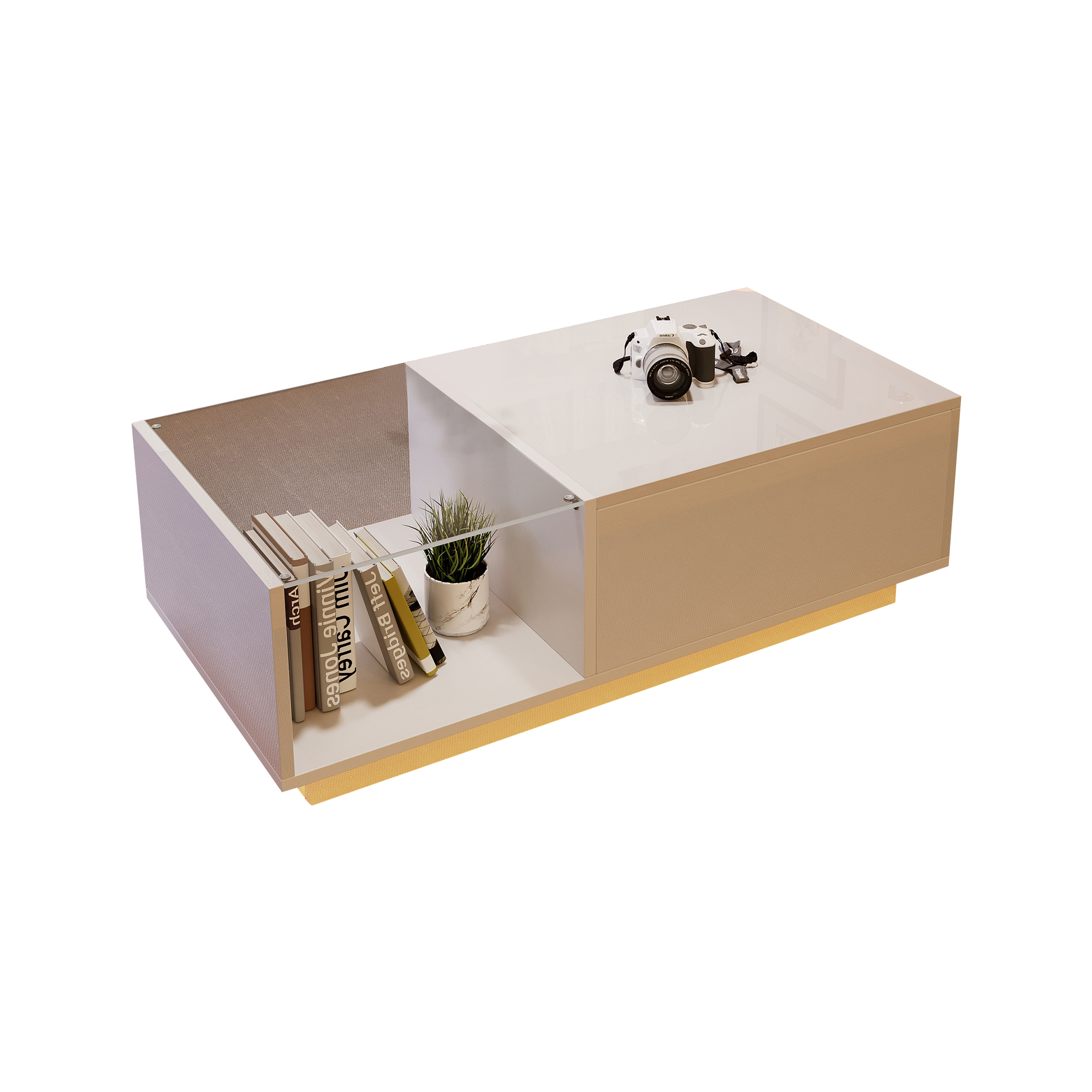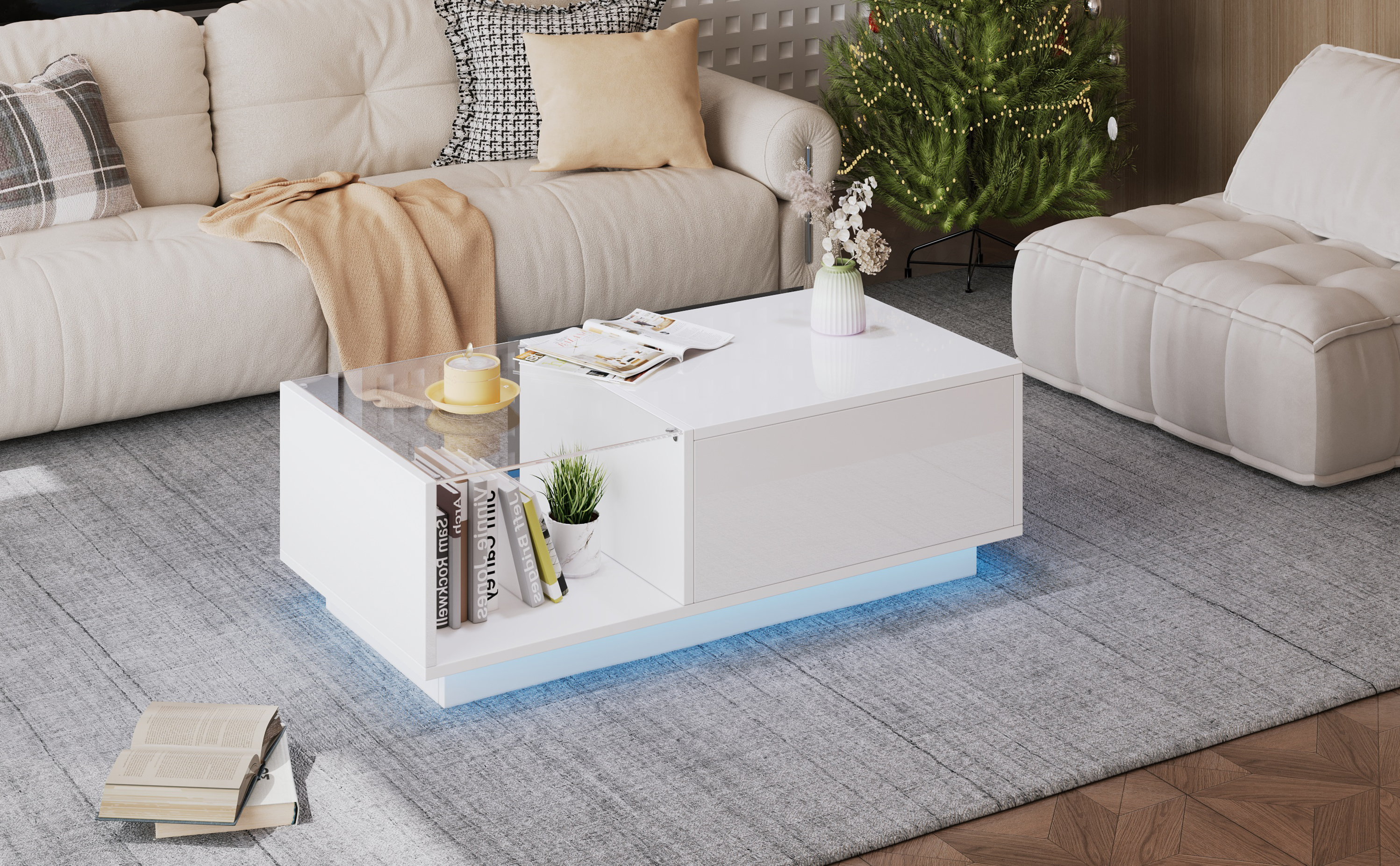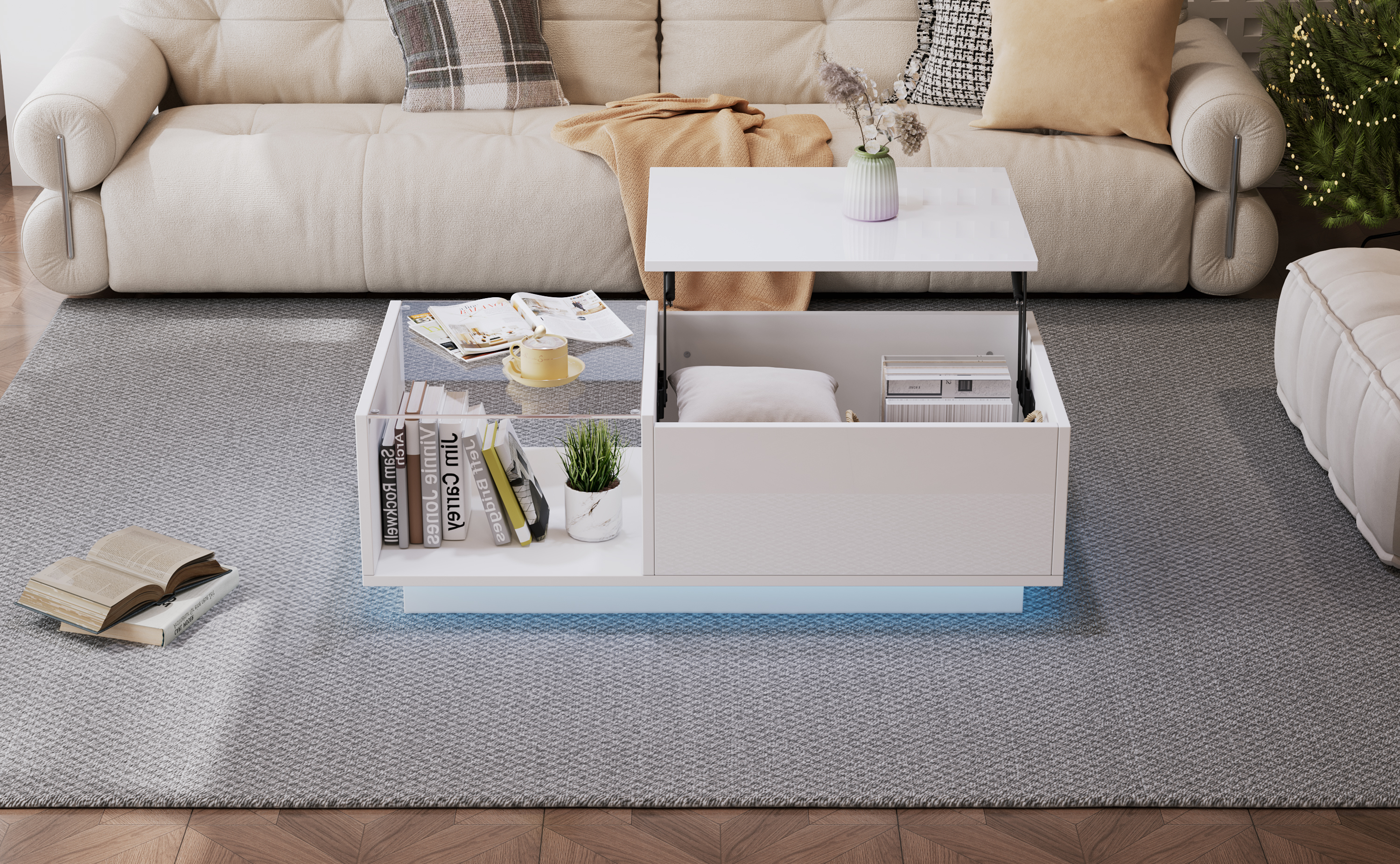 Selling PointsLED / Liftable Tabletop / Open Storage / High-gloss / Half Glass Tabletop