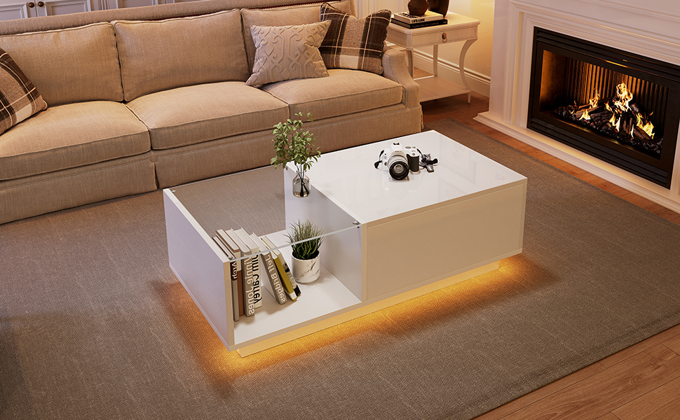 • Suitable Applications: This living room coffee table can be used for dining, working, and studying. With this white coffee table, there's no need to lean forward. You can use your laptop to work or dine on the coffee table while relaxing on the sofa. The light strip is adjustable to different colors to suit any room.