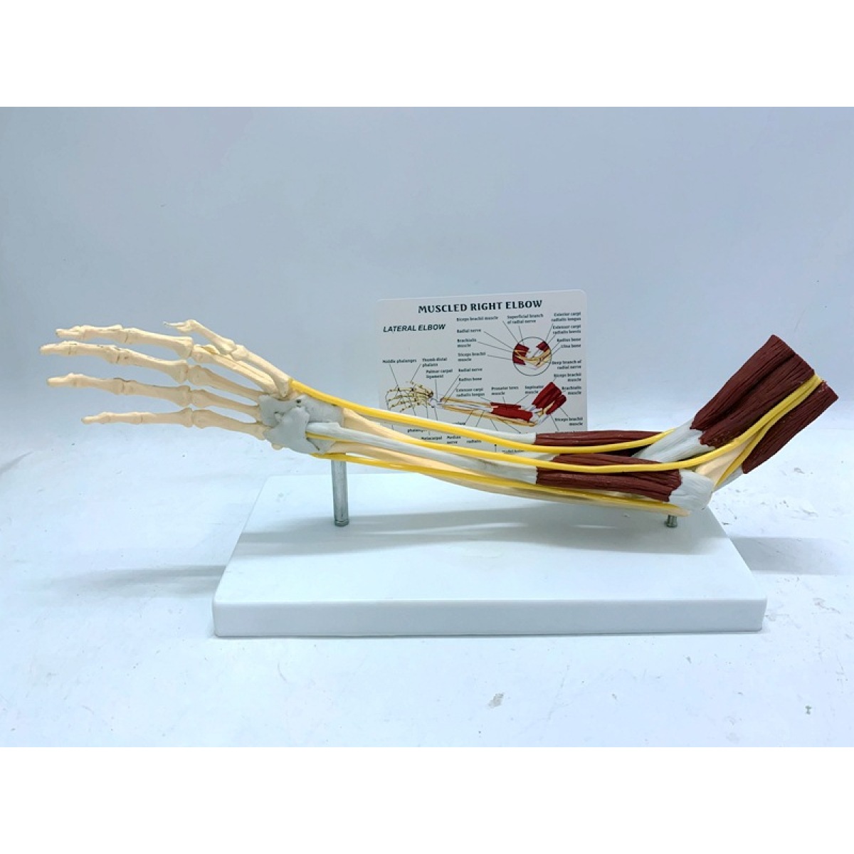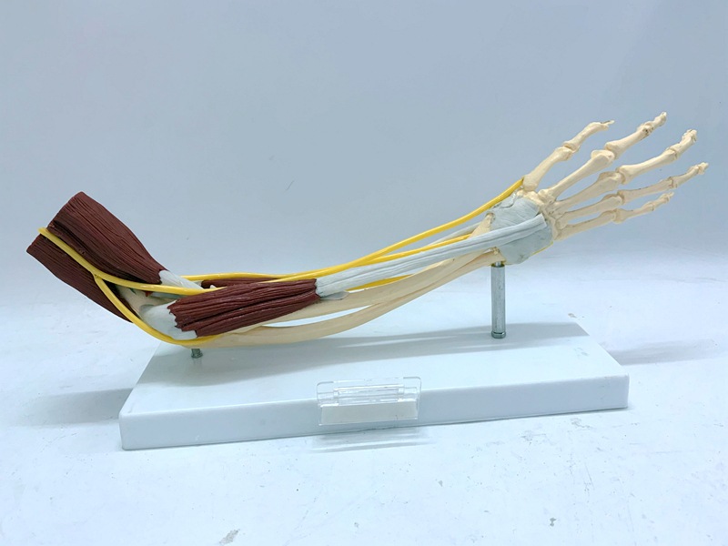 This model shows the bones, muscles, ligaments, nerves, blood vessels and other anatomical structures of the human hand, and the hand aponeurosis and flexor brevis can be removed to see the complex hand muscles, tendons, and nerve grids , Which shows various details of the hand very intuitively.