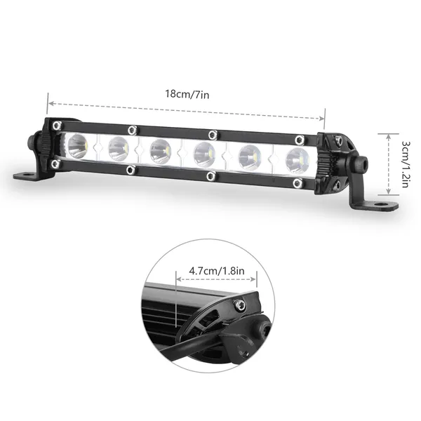Light Bar Single Row Offroad Spot Lights 18W Ultra Slim Straight