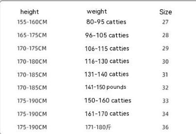 Size: 27, 28, 29, 30, 31, 32, 33, 34