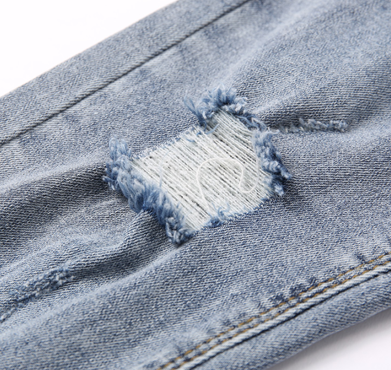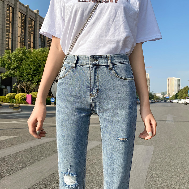 Light Blue Ripped Jeans Women's Thin And Tall Nine-point Pencil Feet Pants