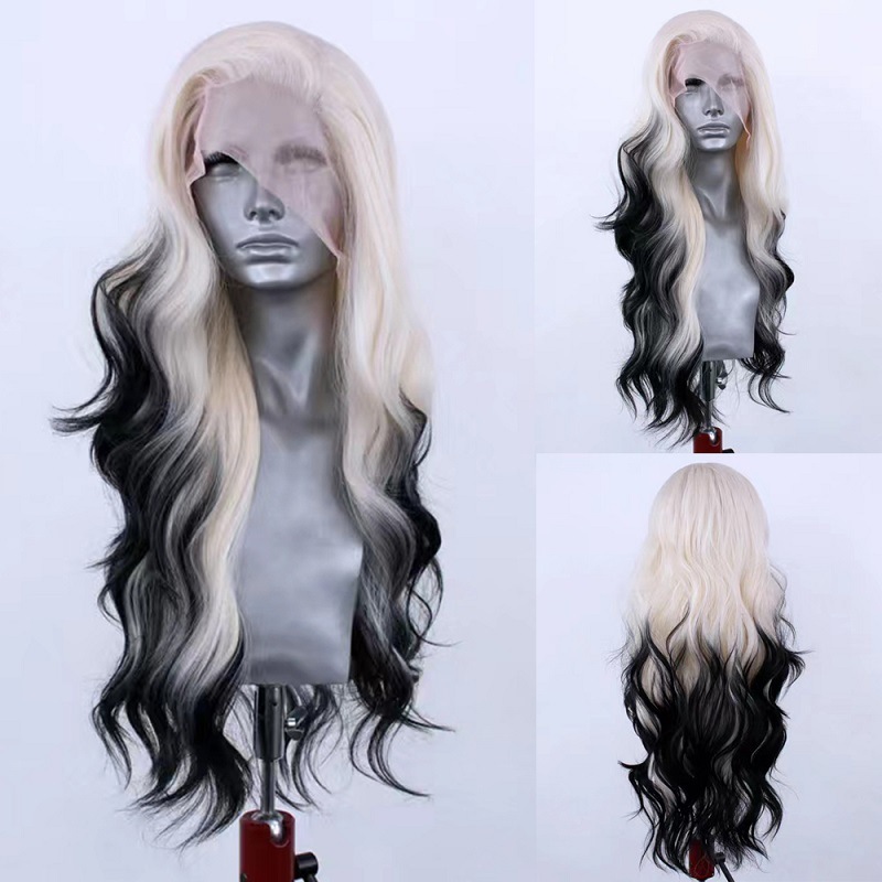 Light Gold Black Gradient Synthetic High Temperature Silk Role-playing Hair