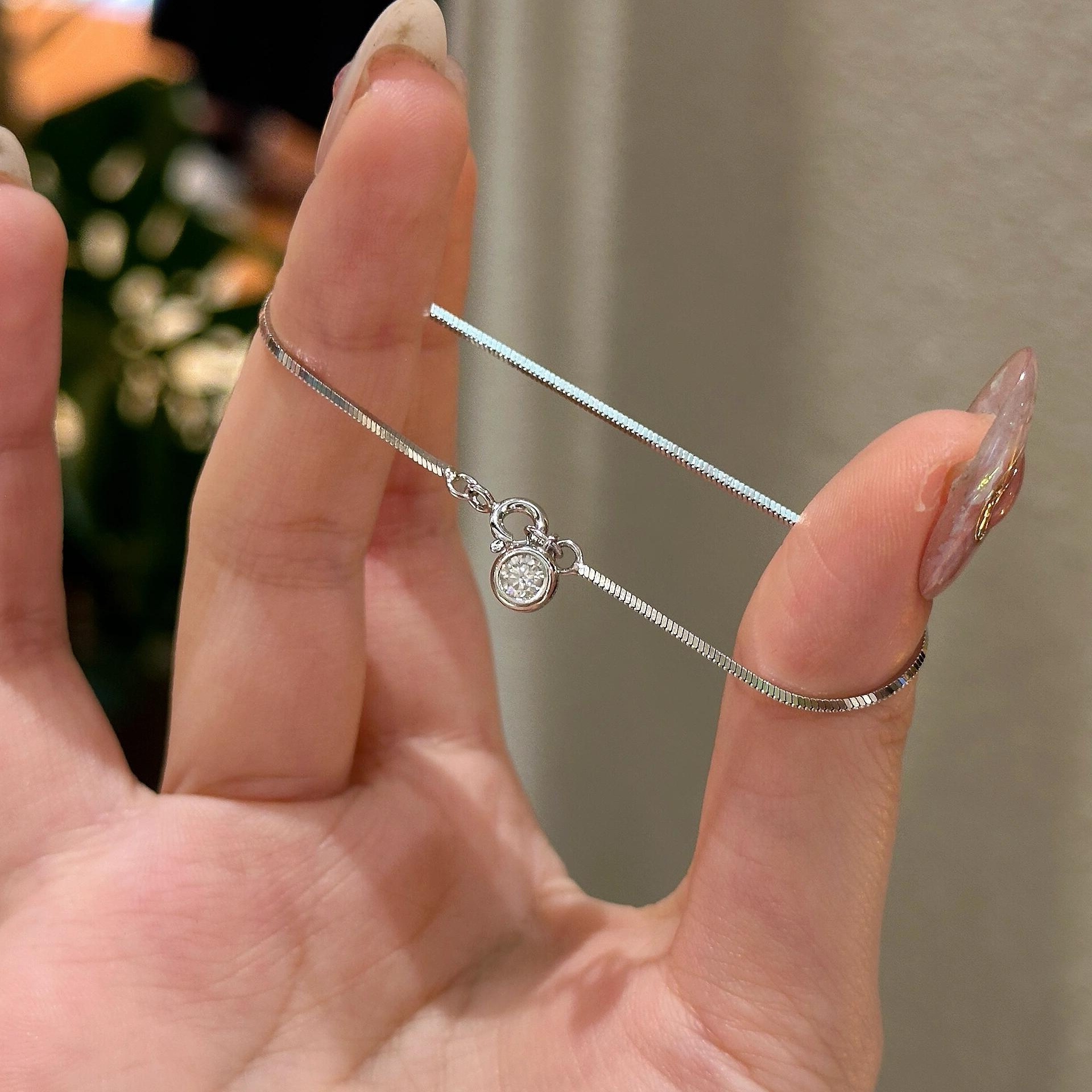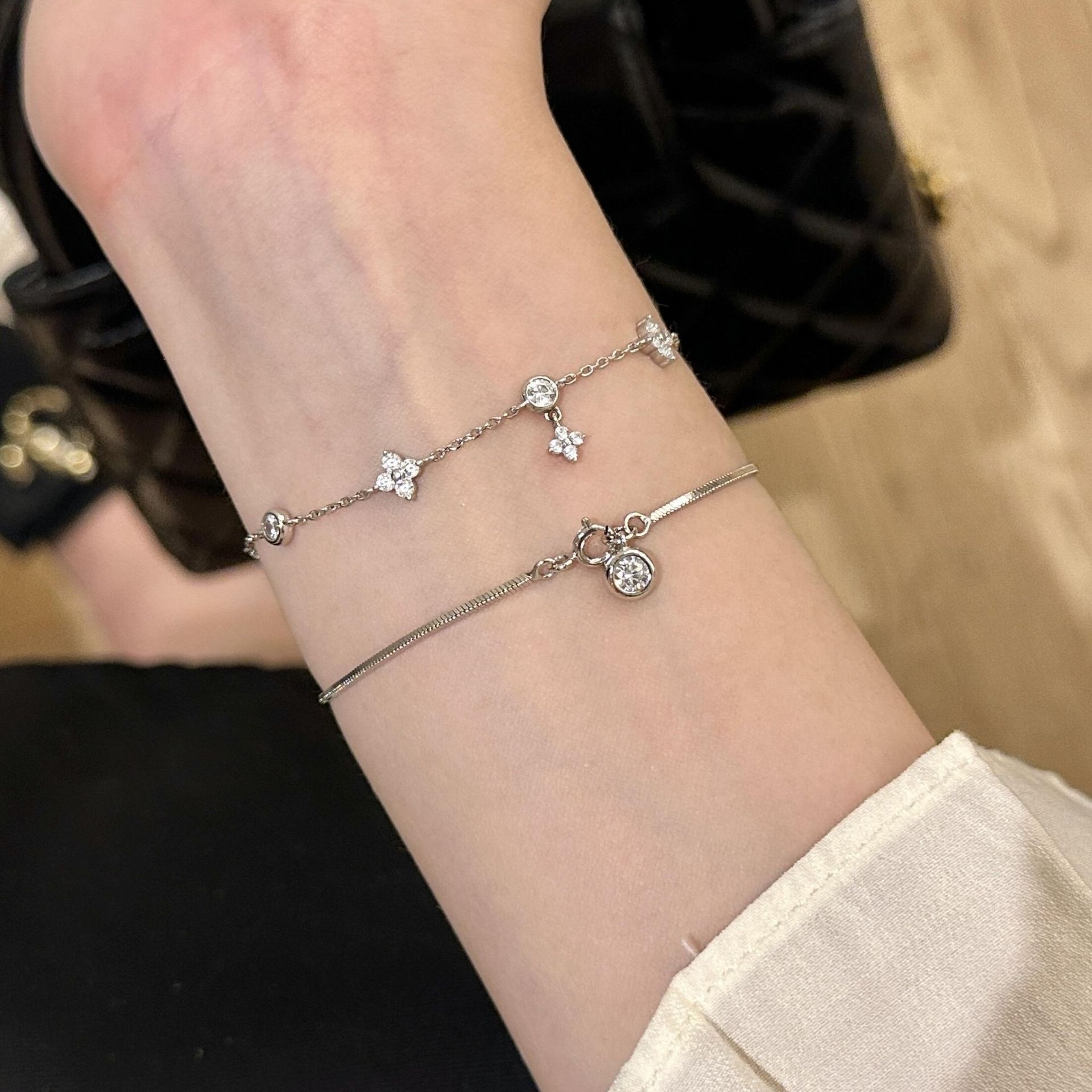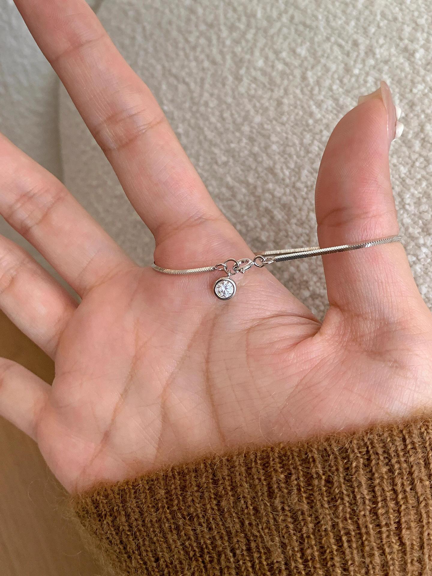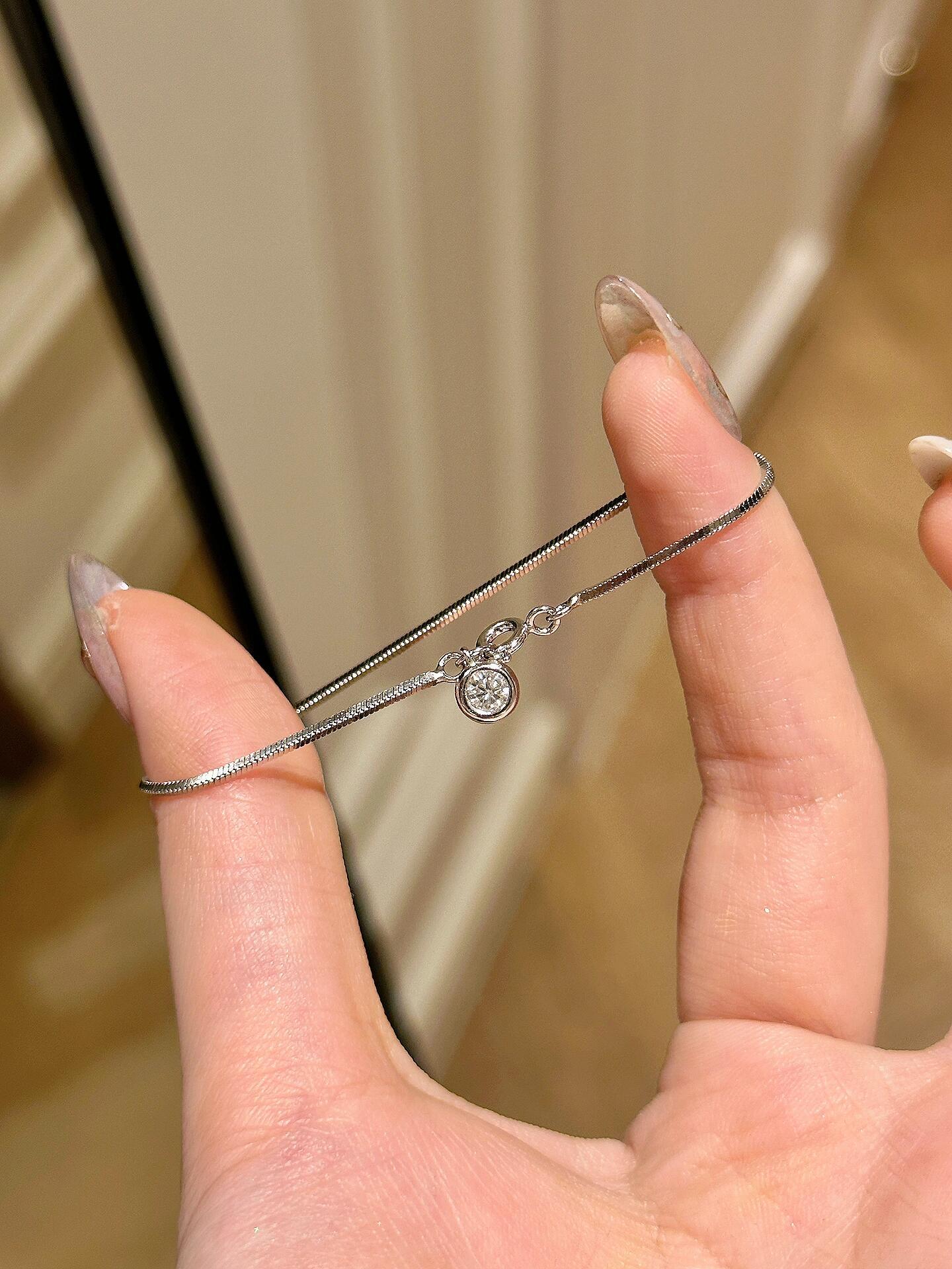Light Luxury Bubble-like Round-diamond Snake-chain Bracelet In Sterling Silver
