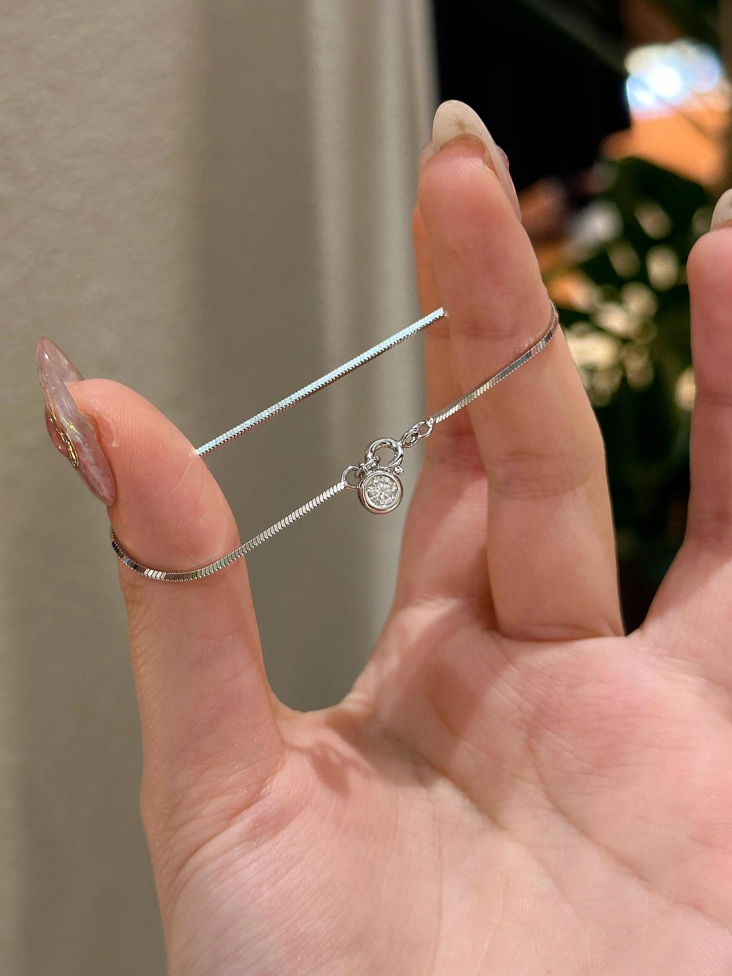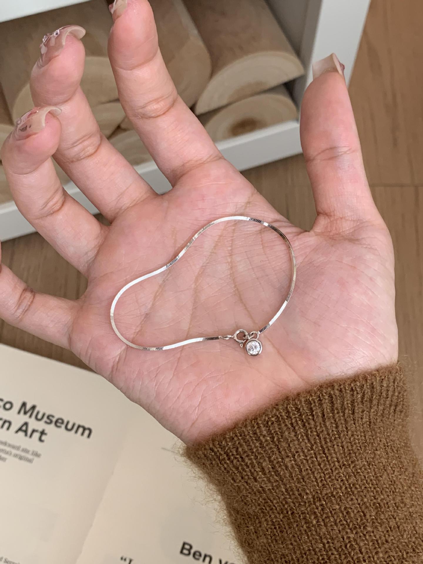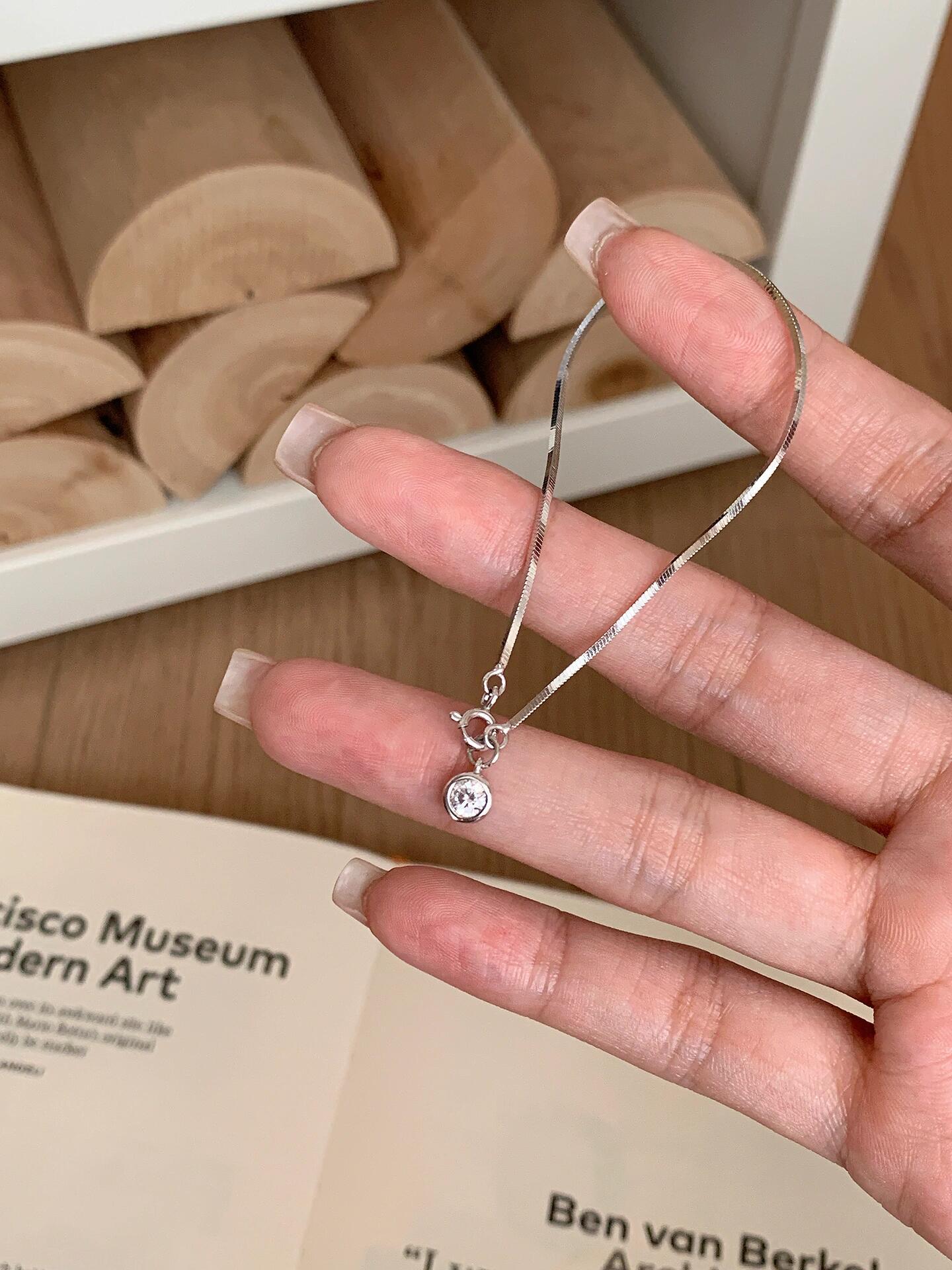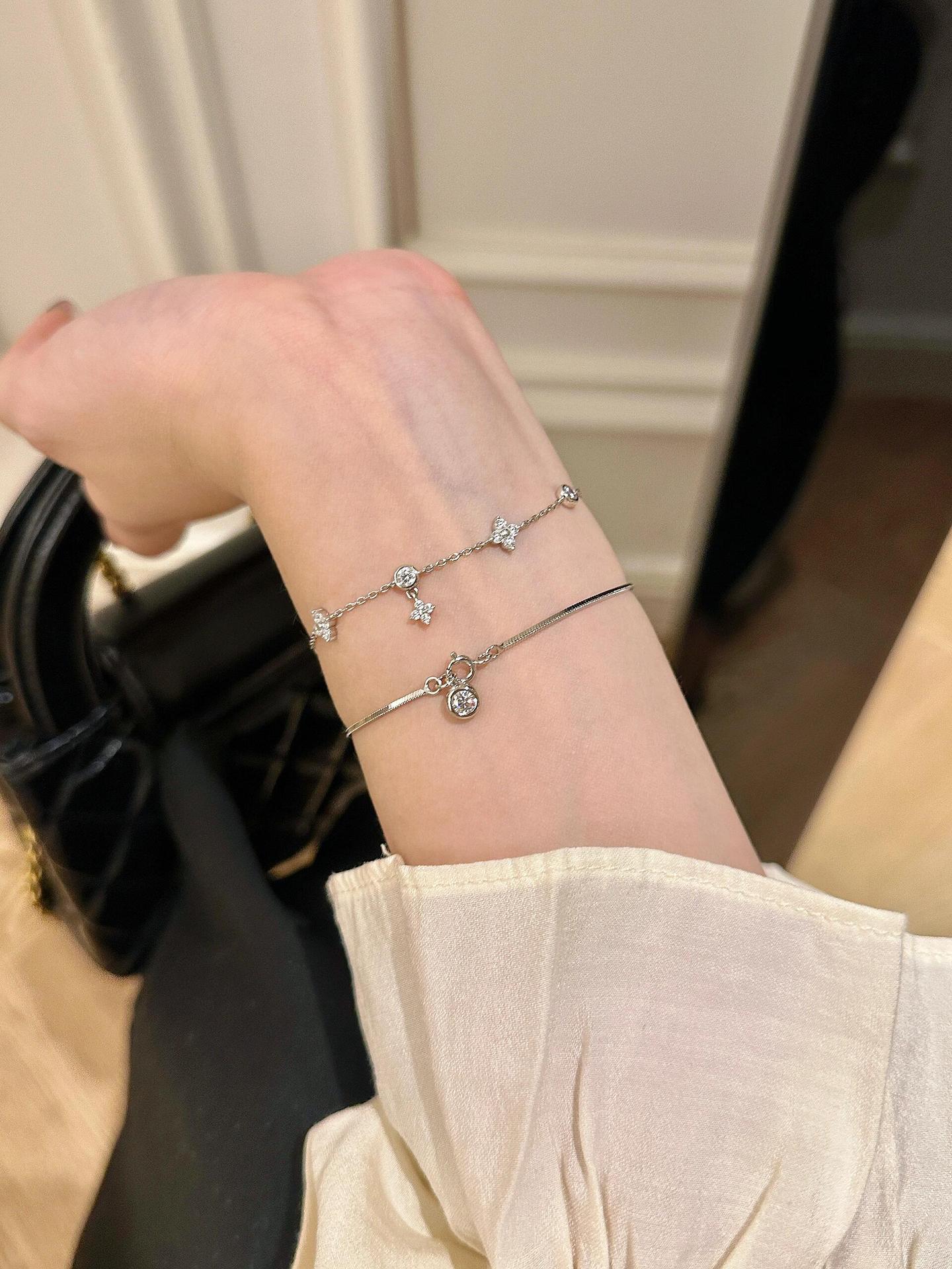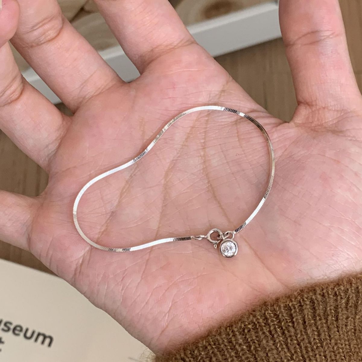 Light Luxury Bubble-like Round-diamond Snake-chain Bracelet In Sterling Silver