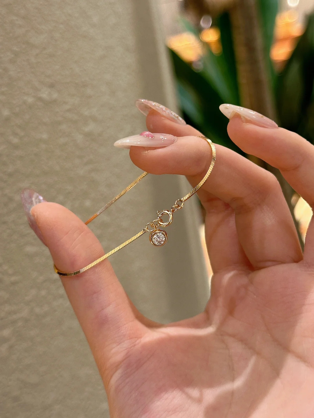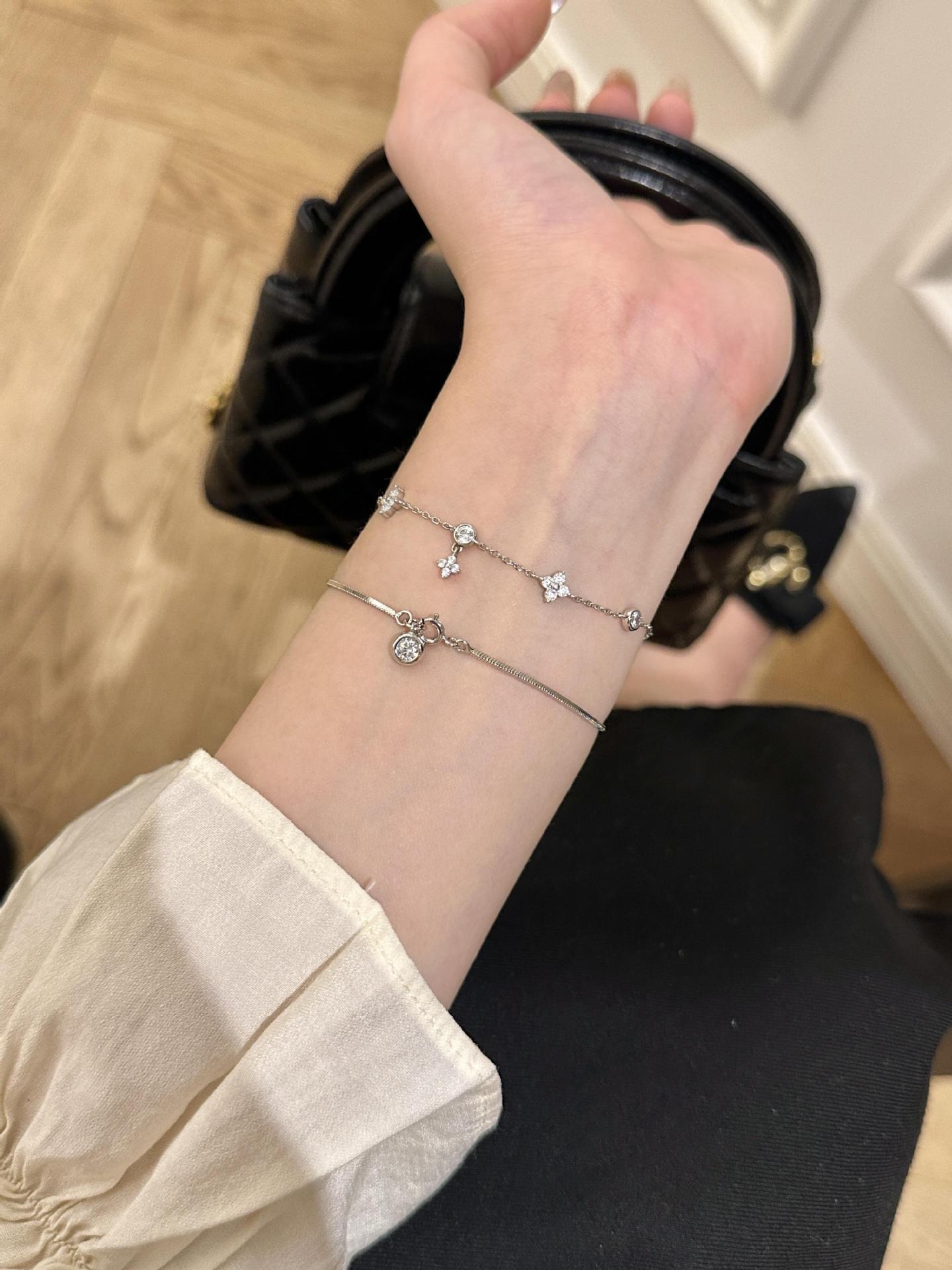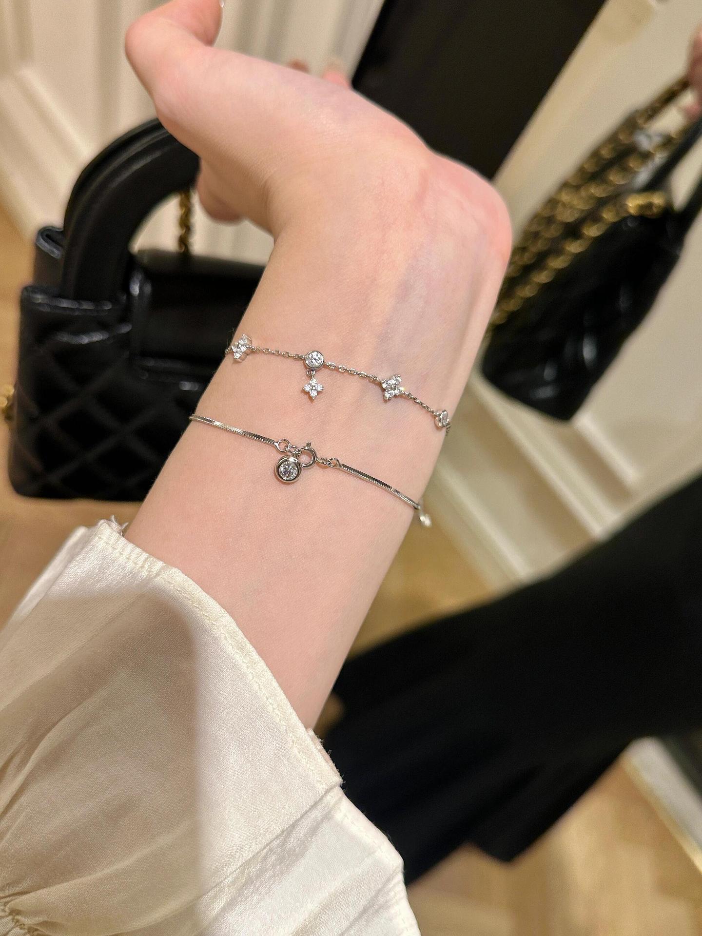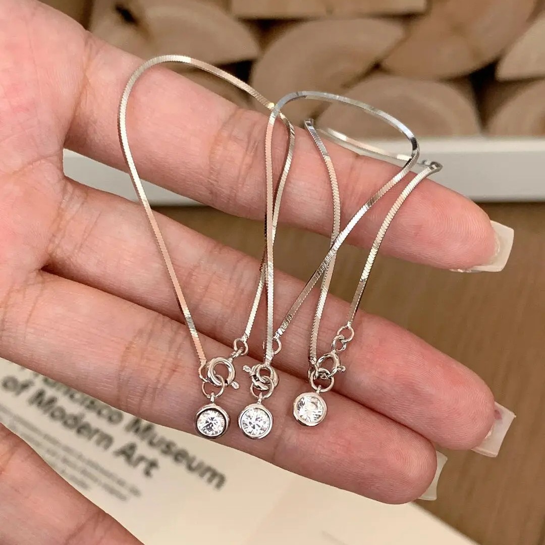 Light Luxury Bubble-like Round-diamond Snake-chain Bracelet In Sterling Silver