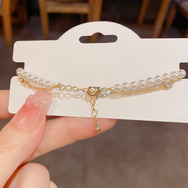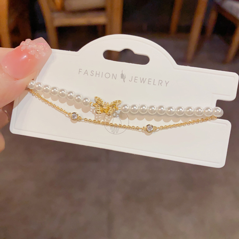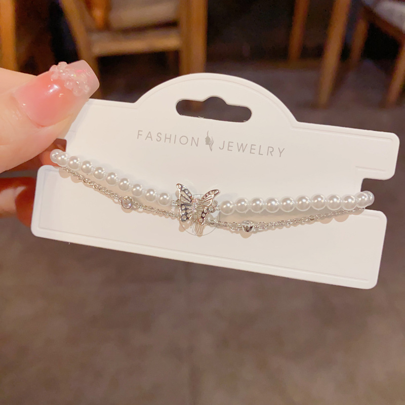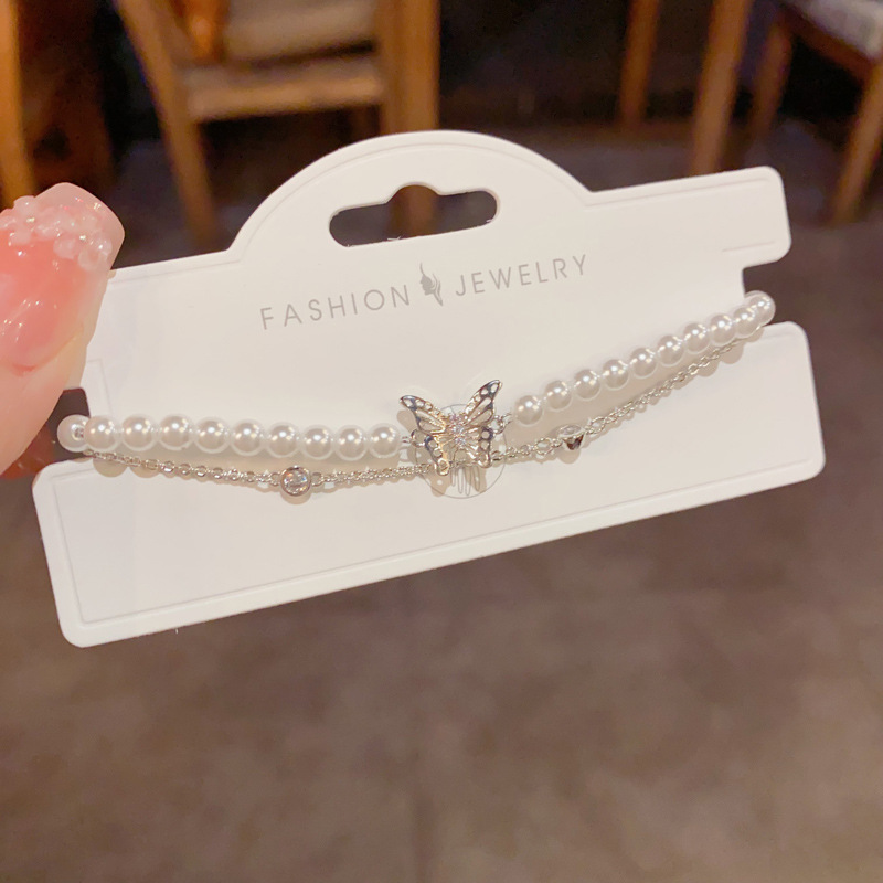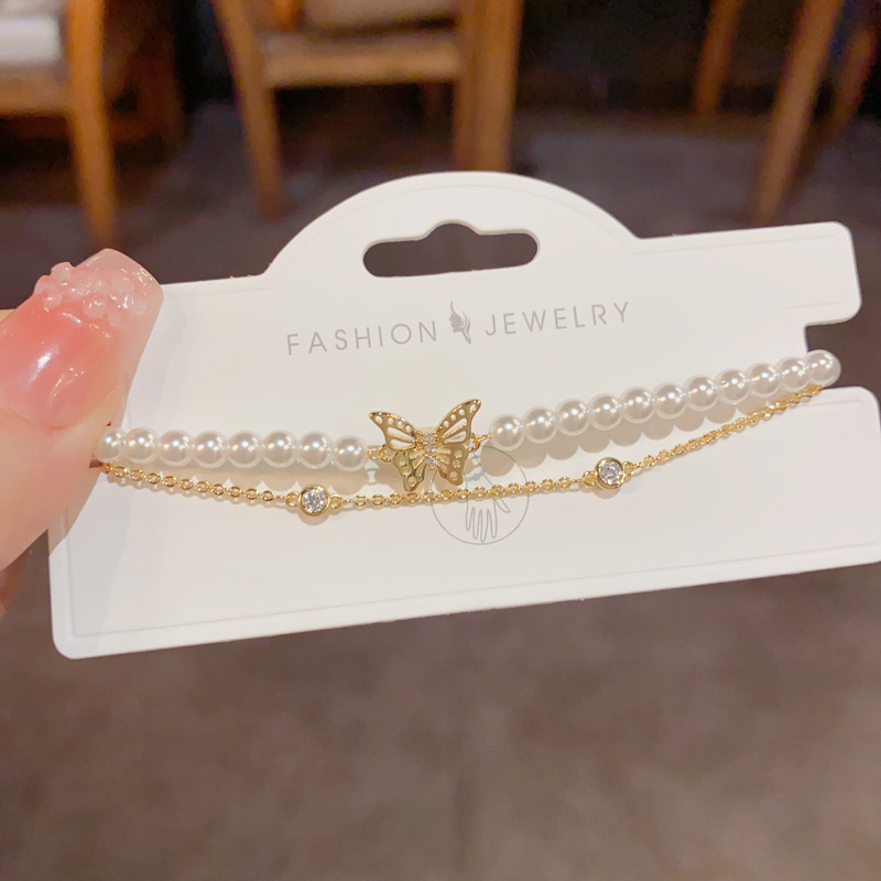 Color: Gold - Double Layer Pearl Chain Butterfly Bracelet (Thickened Real Gold Plating), Silver - Double Layer Pearl Chain Butterfly Bracelet (Thickened Real Gold Plating)