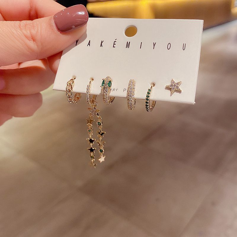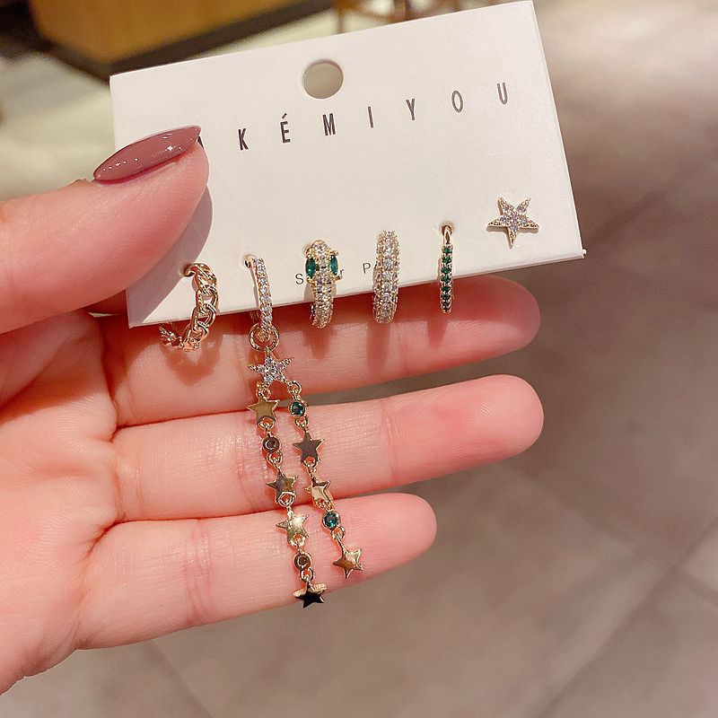 Style: Korean version, Korean style / Korean styleMaterial: CopperType: EarringsShape: StarInlay material: ZirconColor: Gold Plated