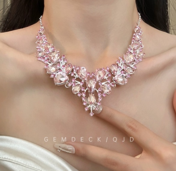 Color: pink rhinestone necklace