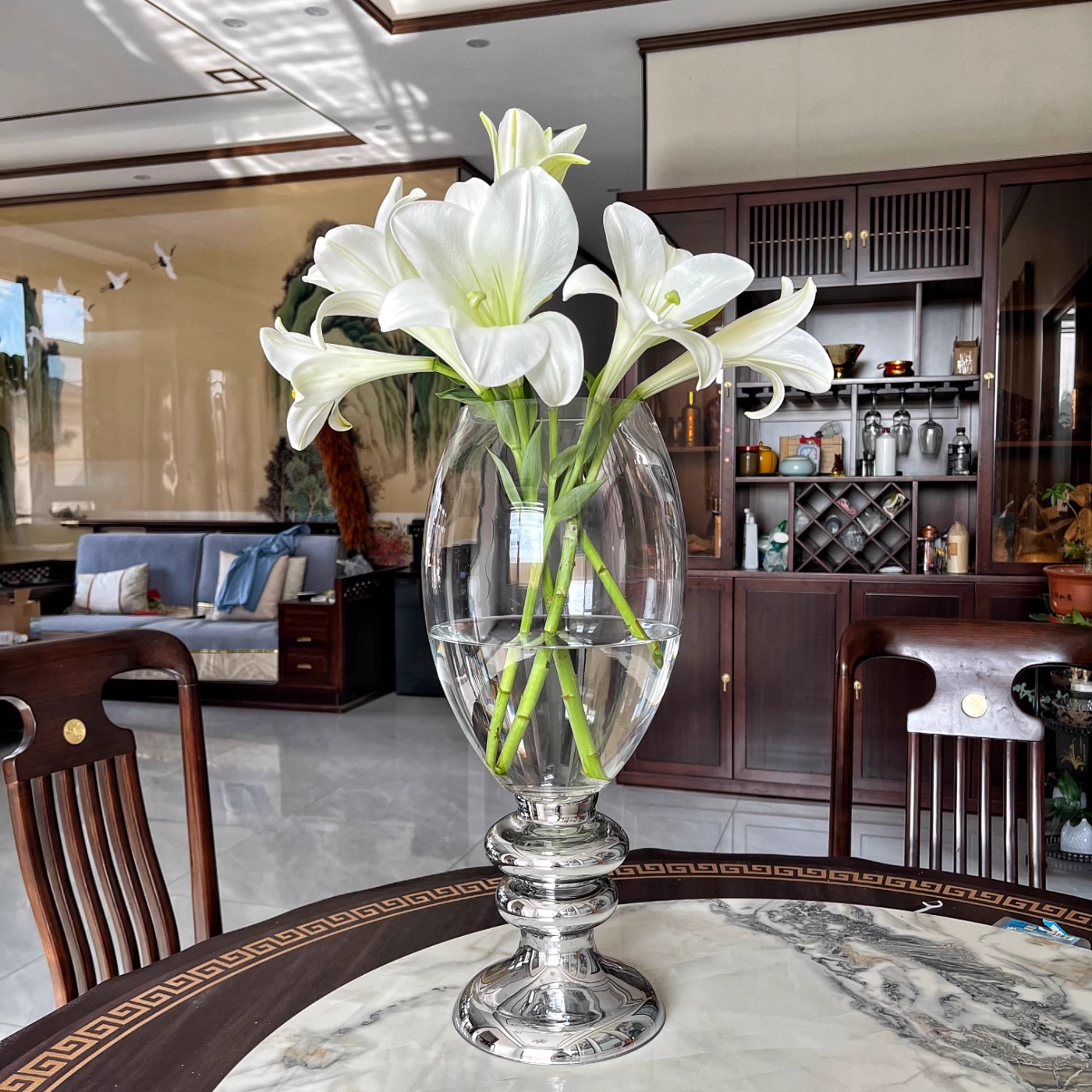Light Luxury High-Stemmed Retro Transparent Glass Vase Ornament