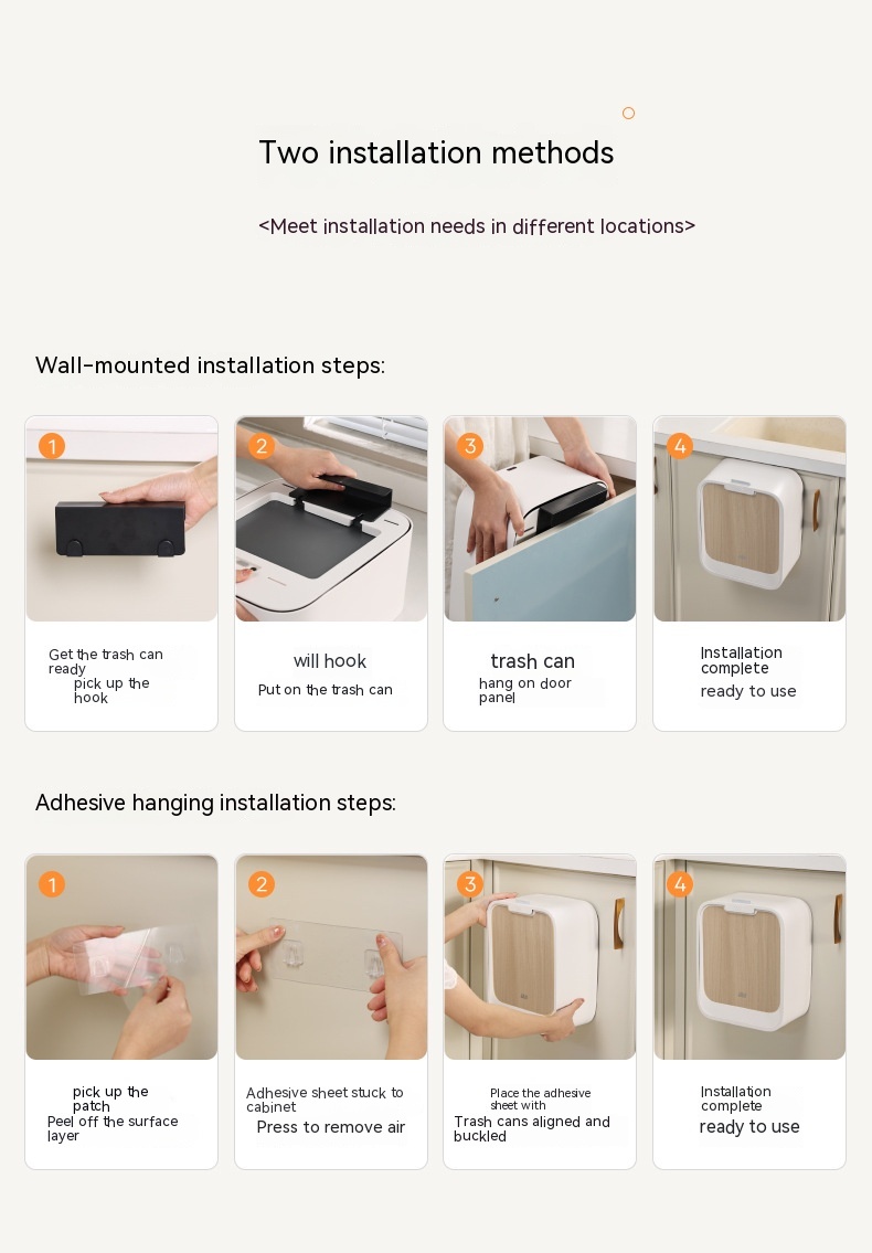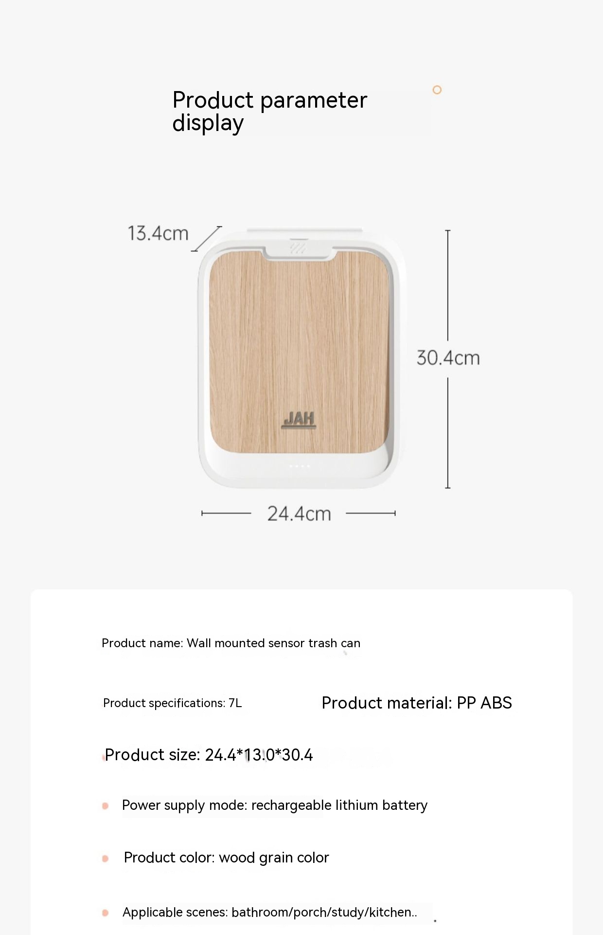 Color: 7L gray wall-mounted trash can-manual open cover, 7L light wood grain wall-mounted trash can-manual open cover, 7L deep wood grain wall-mounted trash can-manual open cover, 7L gray wall-mounted trash can-induction open cover, 7L light wood grain color wall-mounted trash can-induction open cover, 7L deep wood grain color wall-mounted trash can-induction open cover