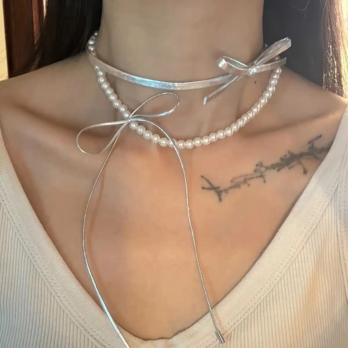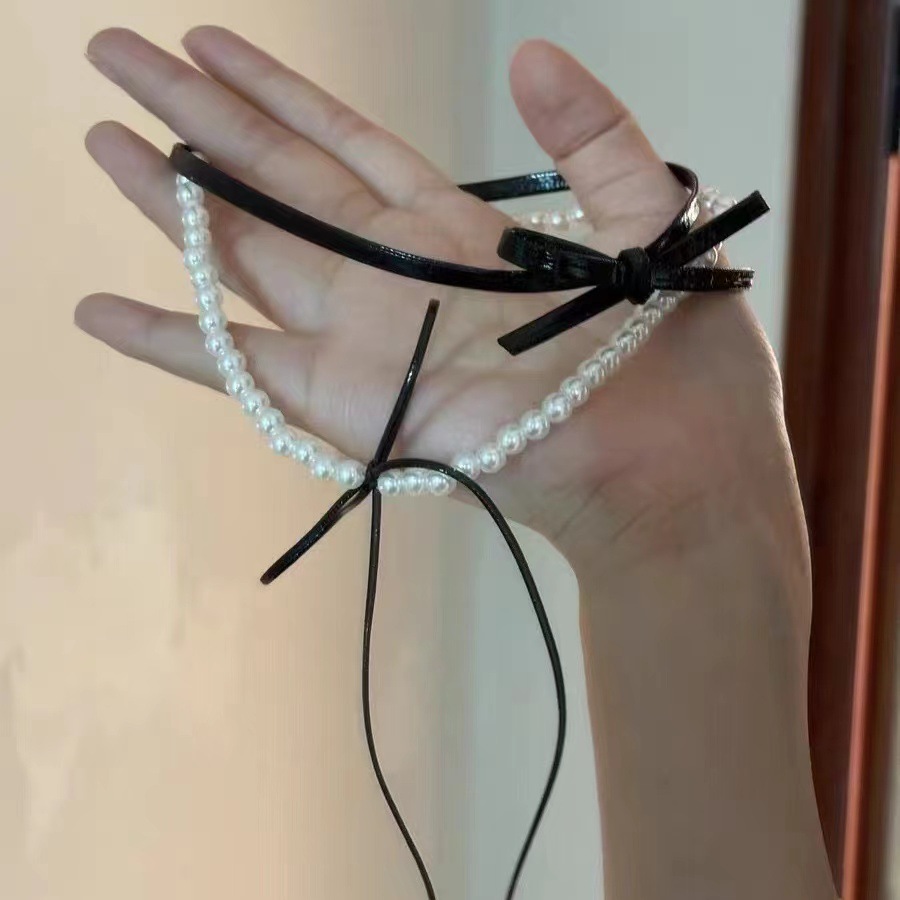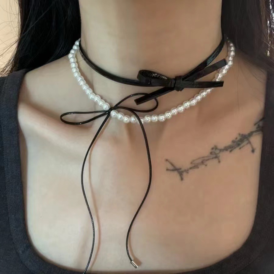 Color: Gray—leather cord bow necklace, Black—leather cord bow necklace