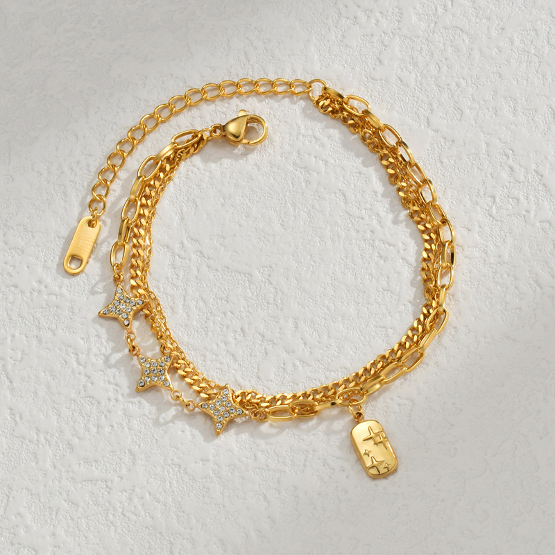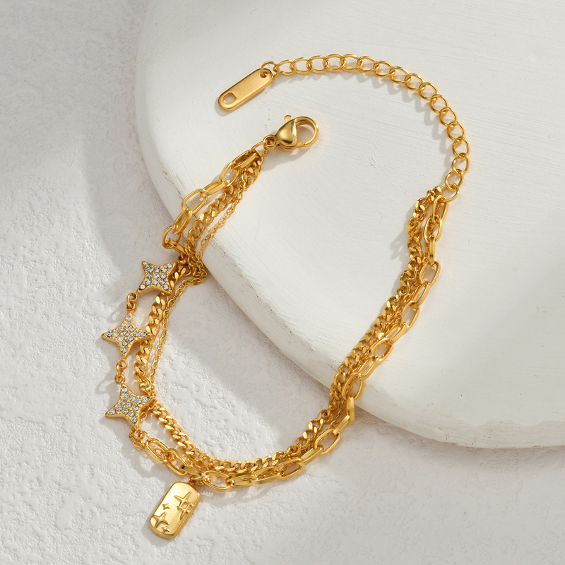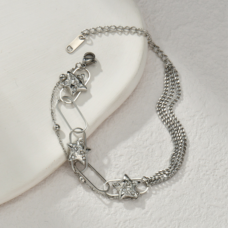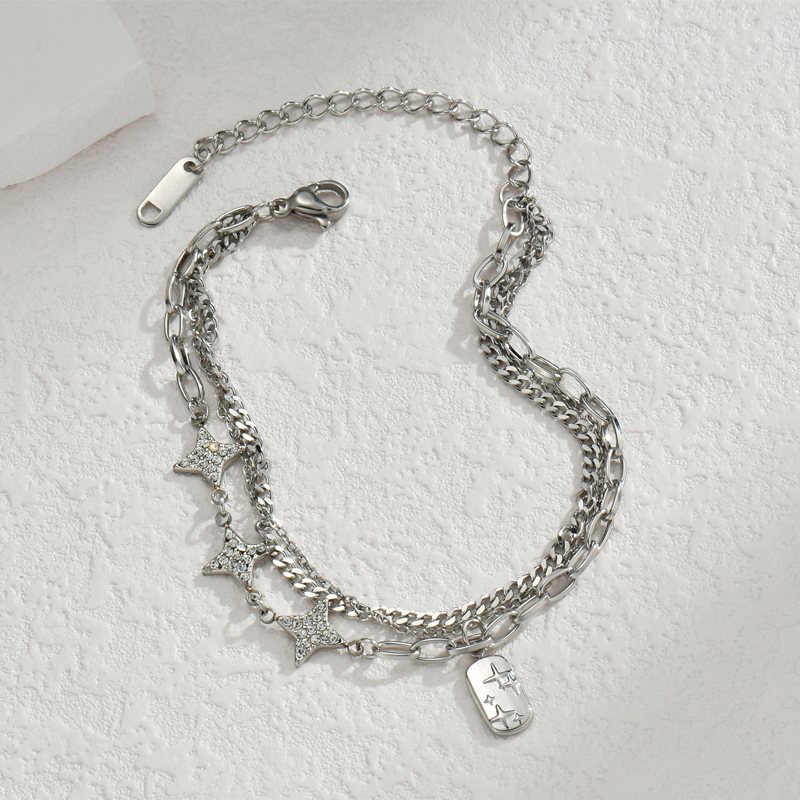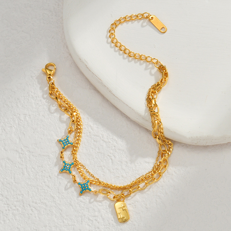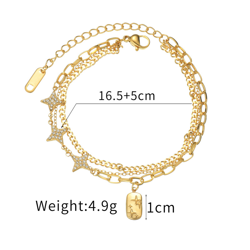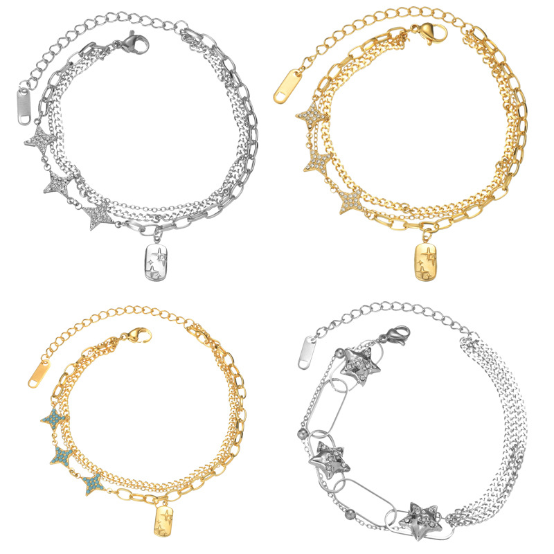 Color: Steel white diamond, gold white diamond, gold Blue Diamond, five-pointed star bracelet