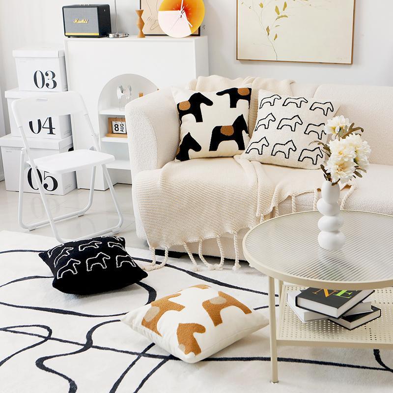 Color: Sheep Letter 45 x45, dog brown rectangular 30 x50, brown pony 45 x45, Teddy Plush black pony 45 x45, Teddy plush white velvet pony 45 x45, black and white houndstooth 45 x45, black pony 45 x45, dog brown square 45x45