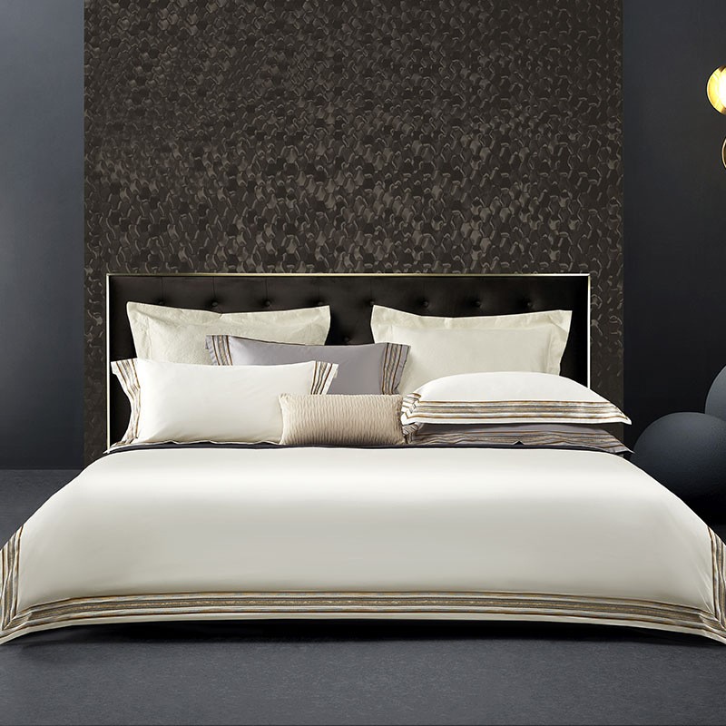 Light Luxury Solid 140 Thread Count Embroidery Solid Four Piece Bedding Set