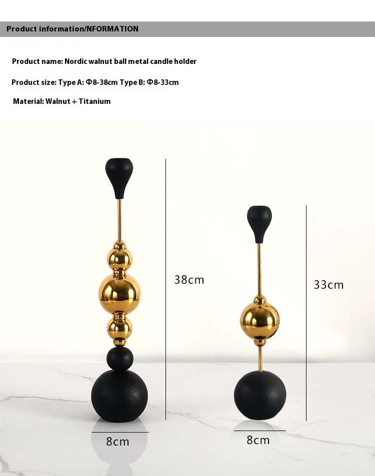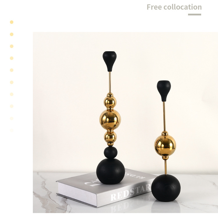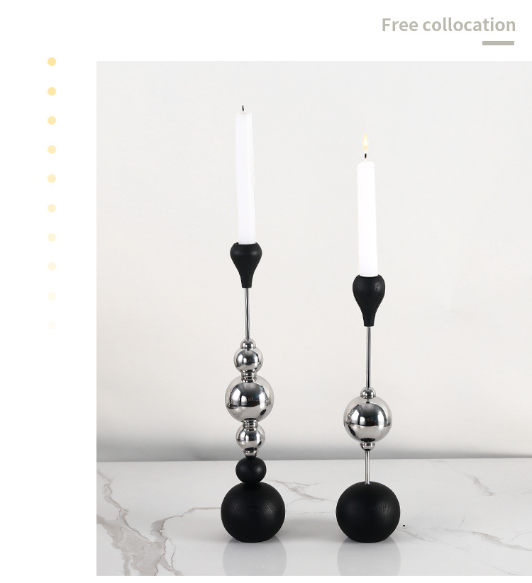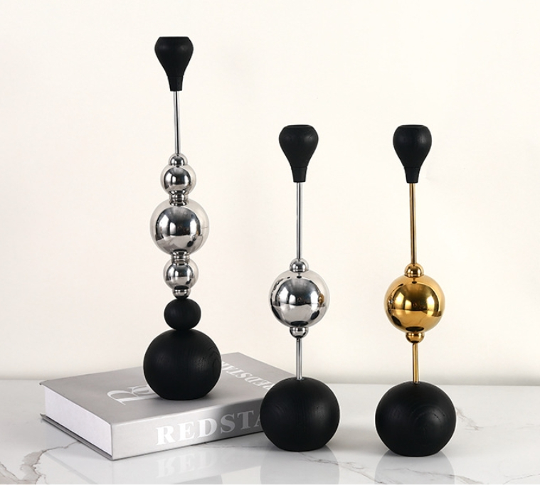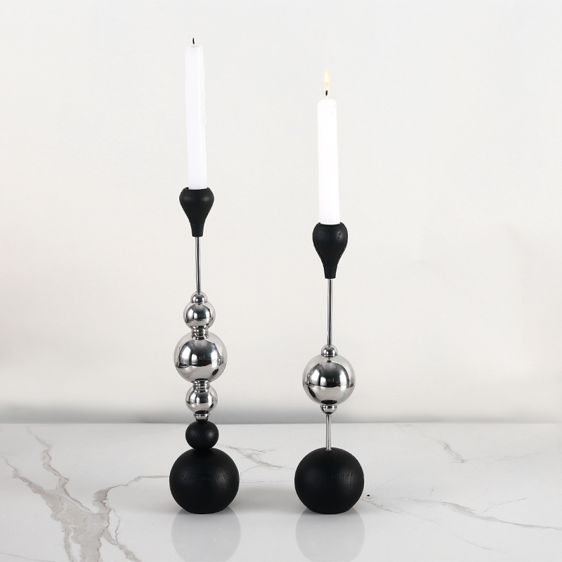 Light Luxury Stainless Steel Candle Table Wooden Ball Metal Candlestick Ornaments