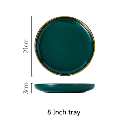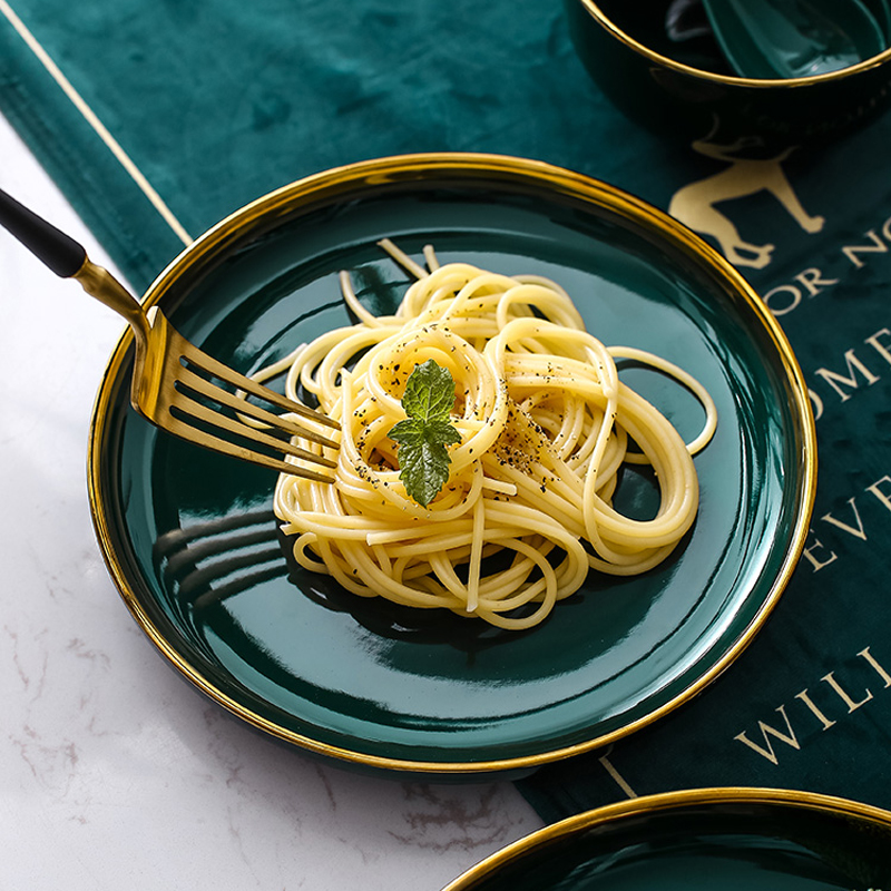 Light luxury style palace Phnom Penh emerald deep dish shallow dish western steak plate household rice bowl ceramic dish set