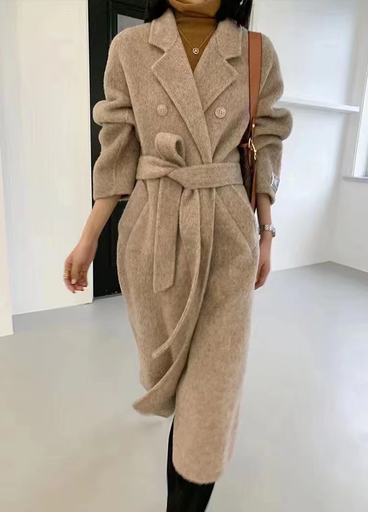 Light luxury thickened rabbit fur mulberry silk double-sided woolen coat
