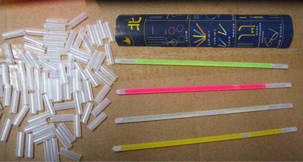 Toy material: fluorescent liquid + glass tube