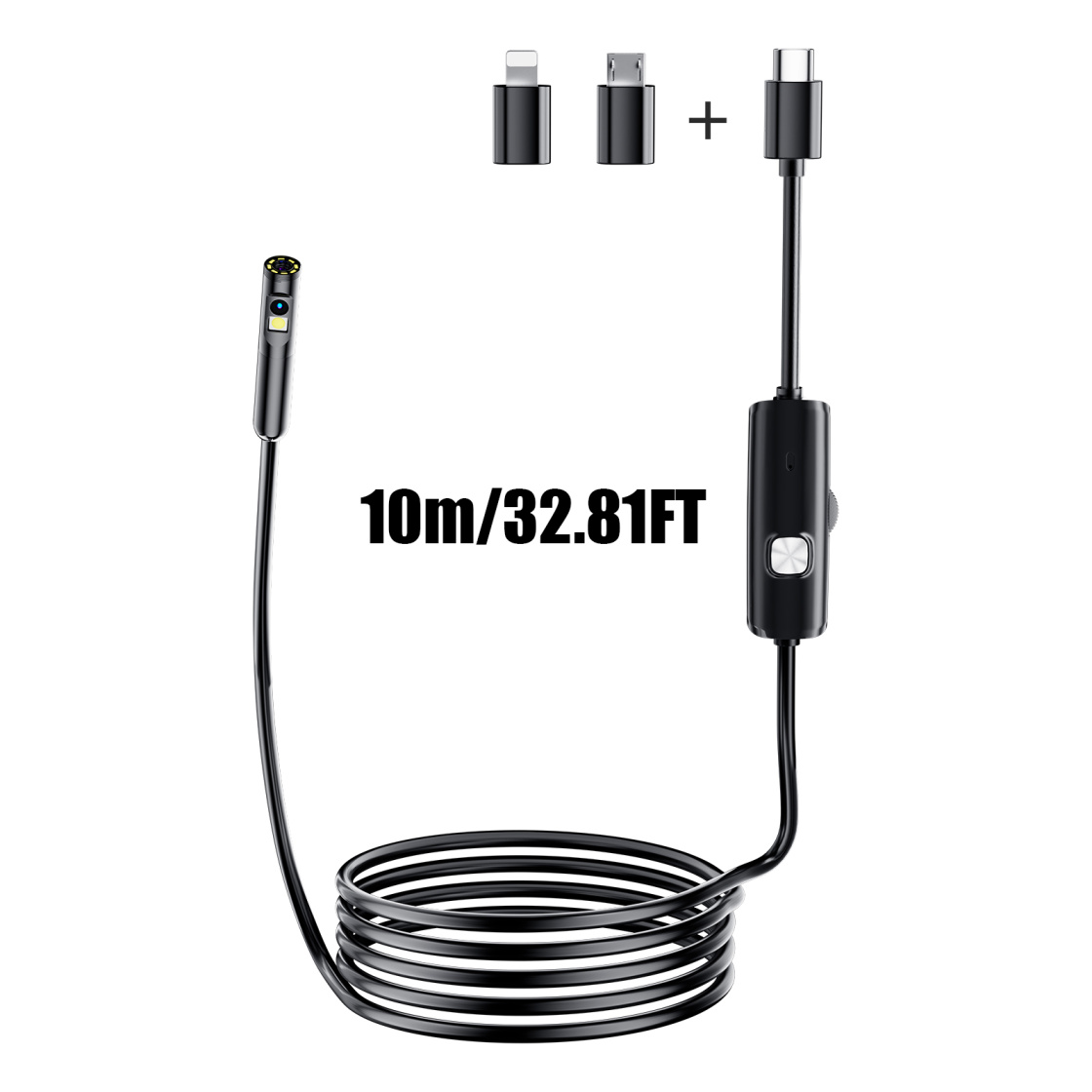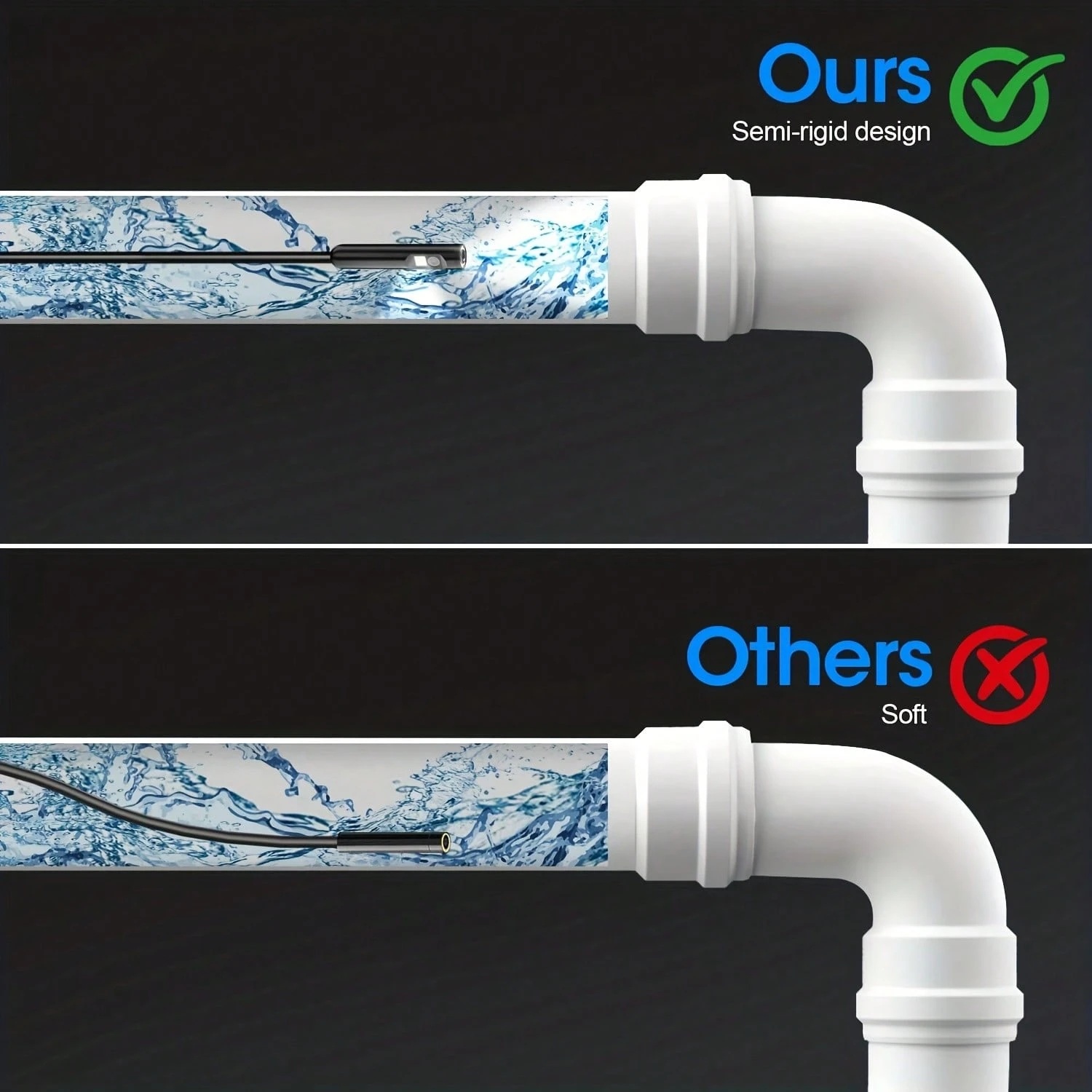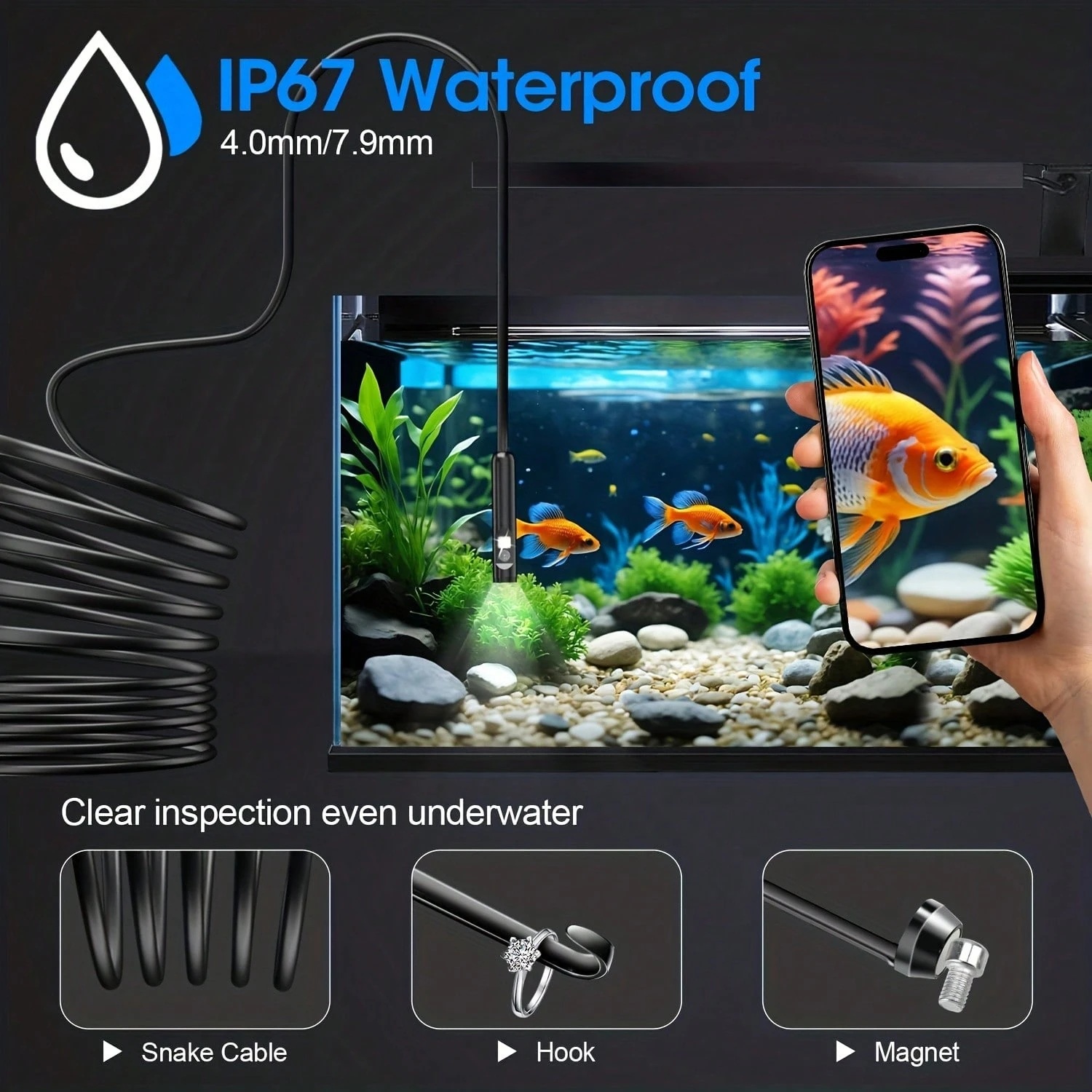 Semi-Rigid Cable & Waterproof Probe: Our snake camera boasts a semi-rigid cable that bends and holds its shape, providing a nice balance of flexibility and rigidity. The IP67 waterproof design ensures that this borescope can operate underwater up to 3.28 feet for 1 hour, making it ideal for plumbing and underwater inspections. It is a good choice for present giving
