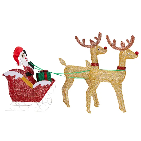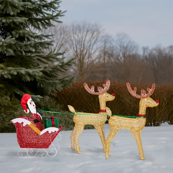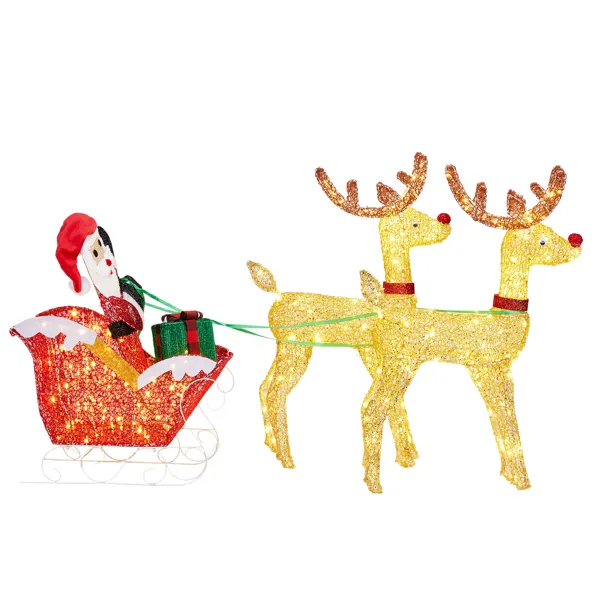 1. Adorable Christmas Decoration: Featuring an adorable reindeer wearing a beautiful red bowknot pulling a santa's sleigh, this decoration adds a playful and festive touch to any space.