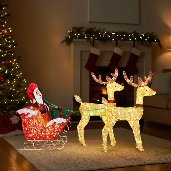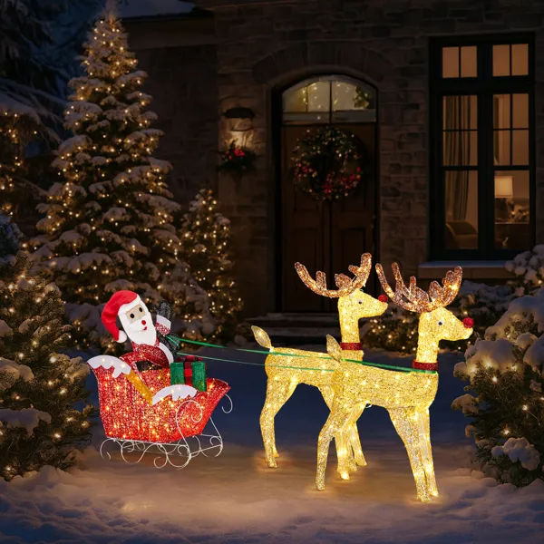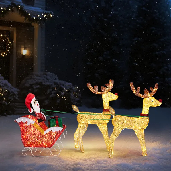 Create a warm and festive atmosphere with this enchanting set of Christmas lighted decorations. Perfect for both indoor and outdoor use, these glowing holiday displays will instantly brighten up your home, yard, or patio, making them a great addition to your seasonal décor. With durable construction and weather-resistant materials, these decorations are designed to withstand winter conditions, ensuring that they will bring holiday cheer year after year. Easy to set up and store, they provide a hassle-free way to enhance your holiday celebrations.