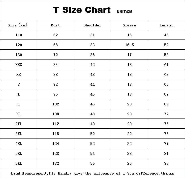 Sizes: S, M, L, XL, XXL, XXXL, XXXXL, 5XL, 6XL