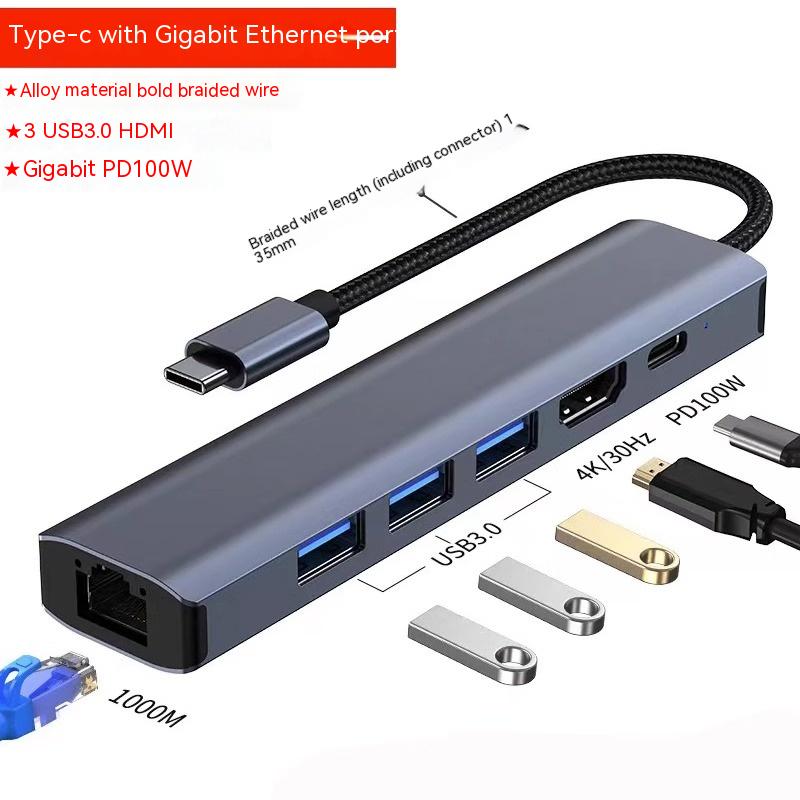Style 16:Type-c interface expansion gigabit network port 3 USB3.0 HDMI PD100W braiding thread