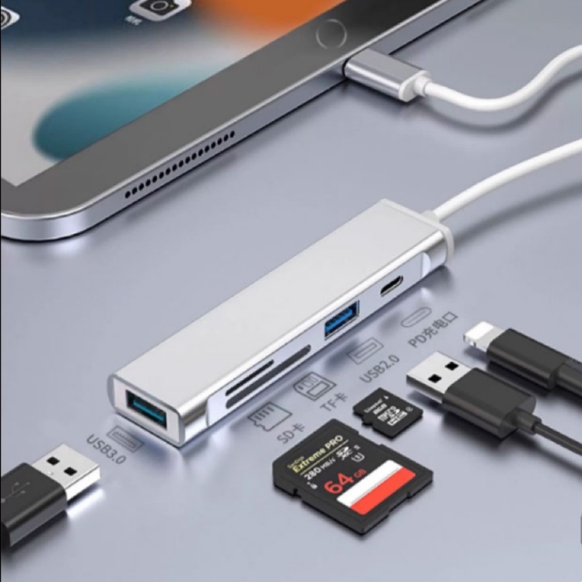 Style 12:Type-c interface expansion [SD/TF 2 USB charging]]★Gray