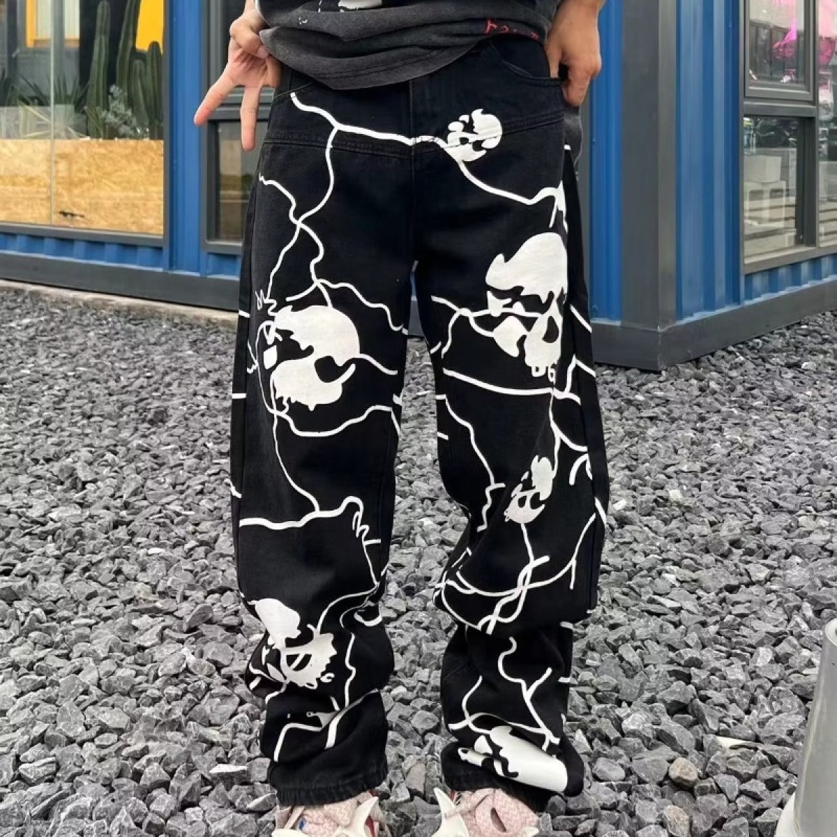 Lightning Skull Washed Denim Trousers