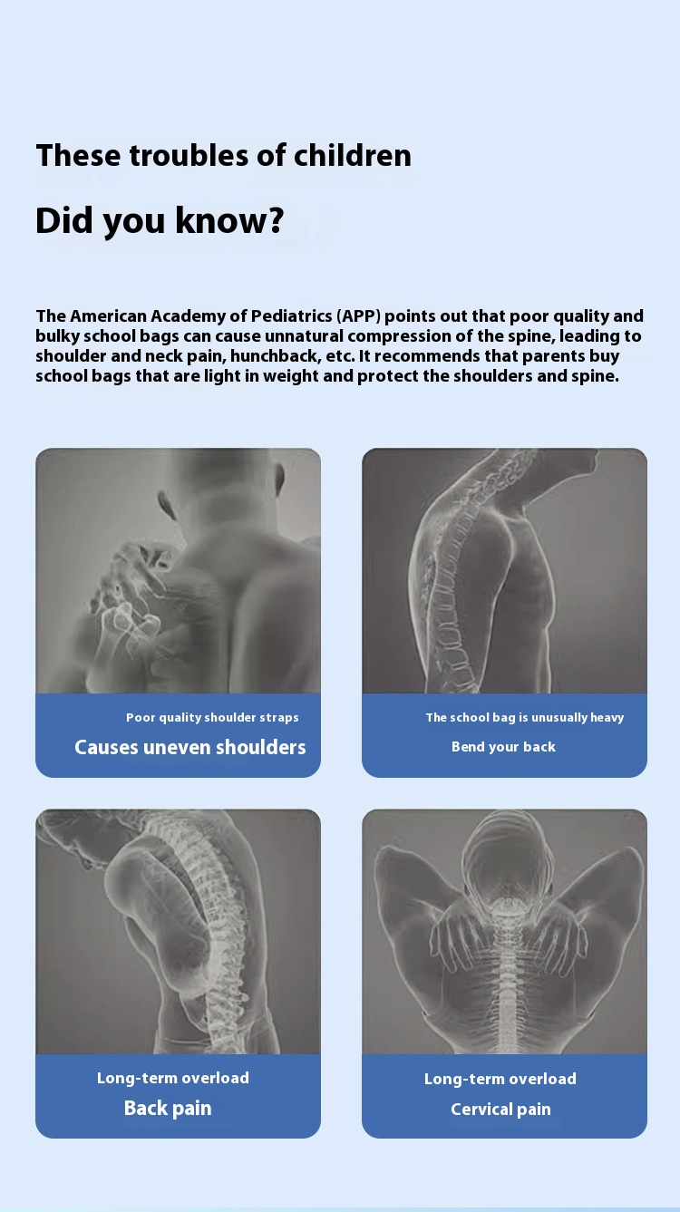 Function: breathable, waterproof, ultra-light, wear-resistant, burden reduction, spine protection, night safety reflective