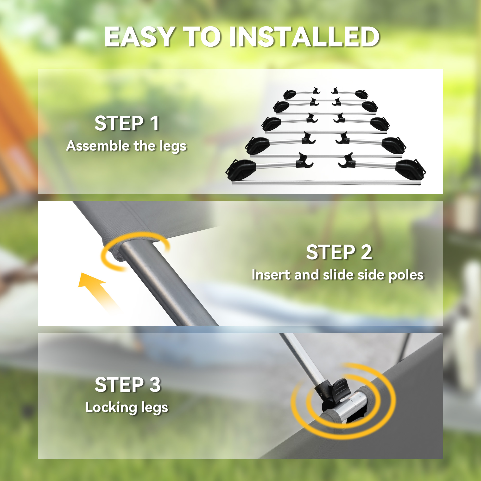 Sleeping when camping is never the great experience. Let's put an end to this, with the help of this camping travel cot. A fully buildable design - comes with legs, side poles and top fabric - set up and take down, put in the bag and take with you wherever you want; makes being comfortable on camping trips ever so easy. The top fabric holds your body comfortably, the legs elevate you so you don't have to touch the ground.