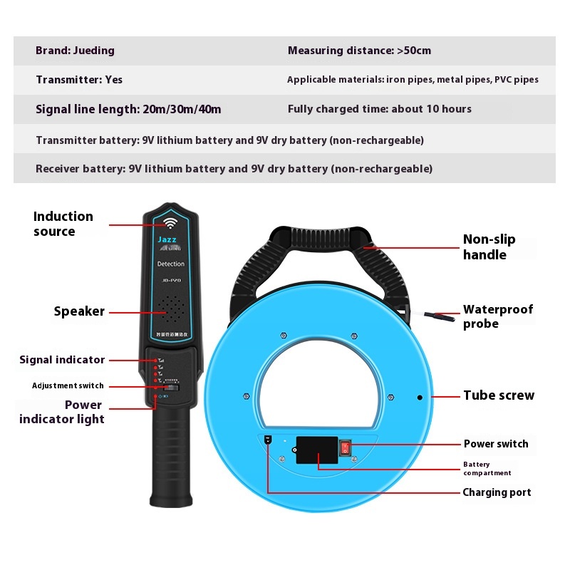 Specifications: 40 m rechargeable 8 probe plastic box, 30 m dry battery 8 probe plastic box, 40 m dry battery 8 probe plastic box
