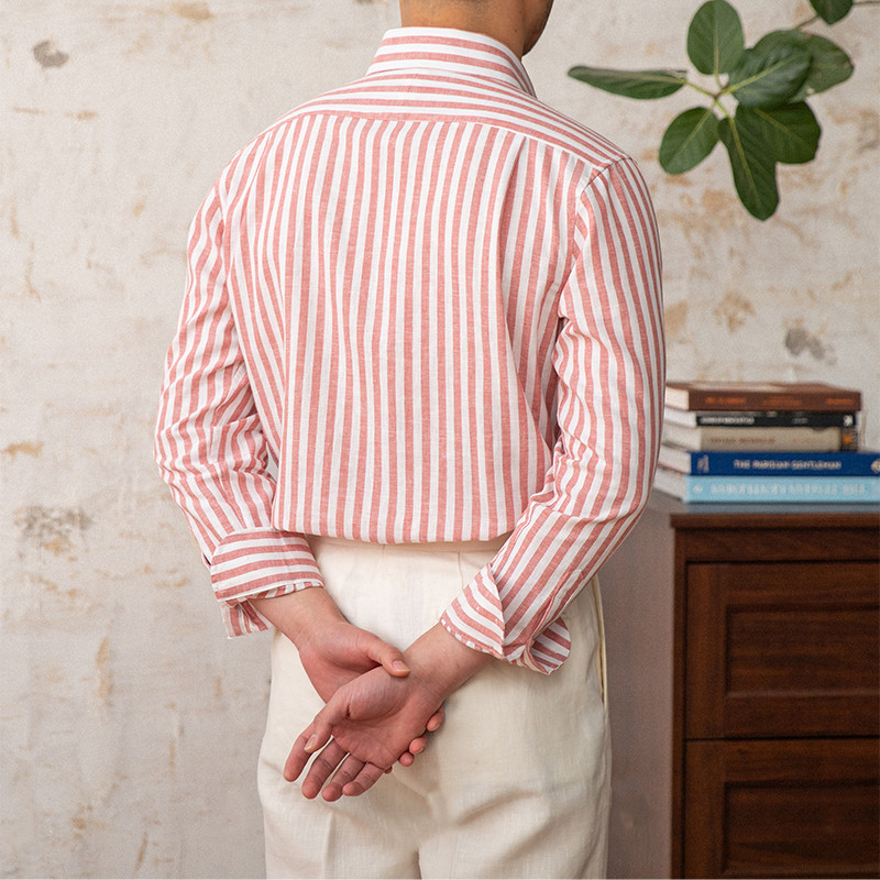 Linen Collar Slim Fit Business Casual Striped Long Sleeve Shirt
